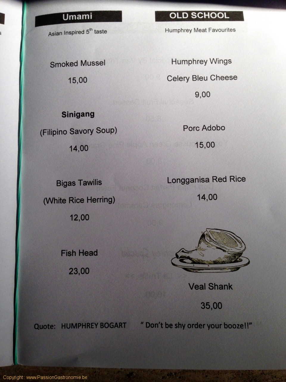 La carte (Umami - Old School) du restaurant Humphrey à Bruxelles @Humphrey