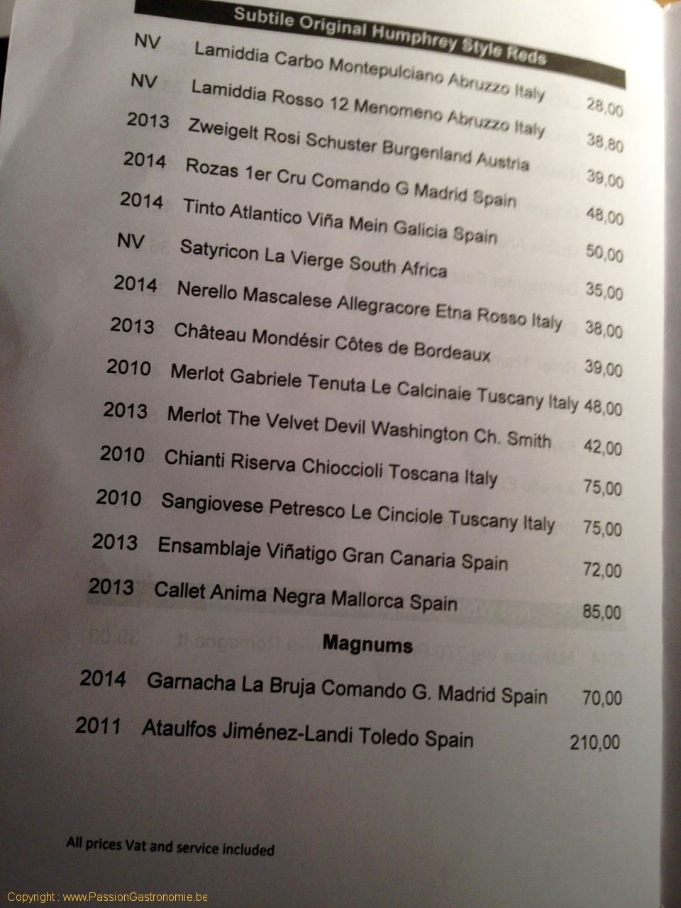 Un vin du restaurant Humphrey à Bruxelles @Humphrey