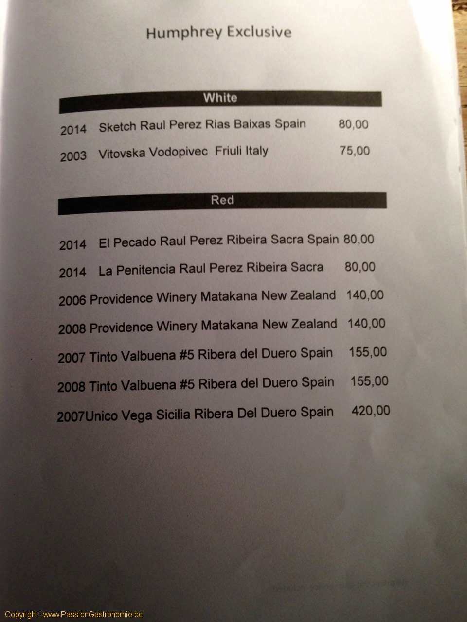 Les vins (exclusive) au restaurant Humphrey à Bruxelles @Humphrey