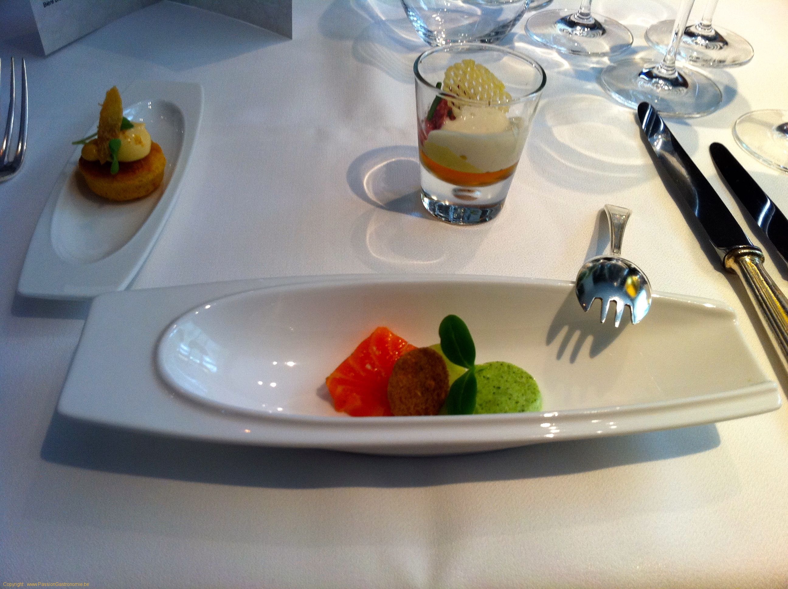 Cet article ne contient que des photos d’un ancien repas. Pour lire un texte plus récent, cliquez ici https://www.passiongastronomie.be/2019/09/restaurant-chateau-mylord-ellezelles/
