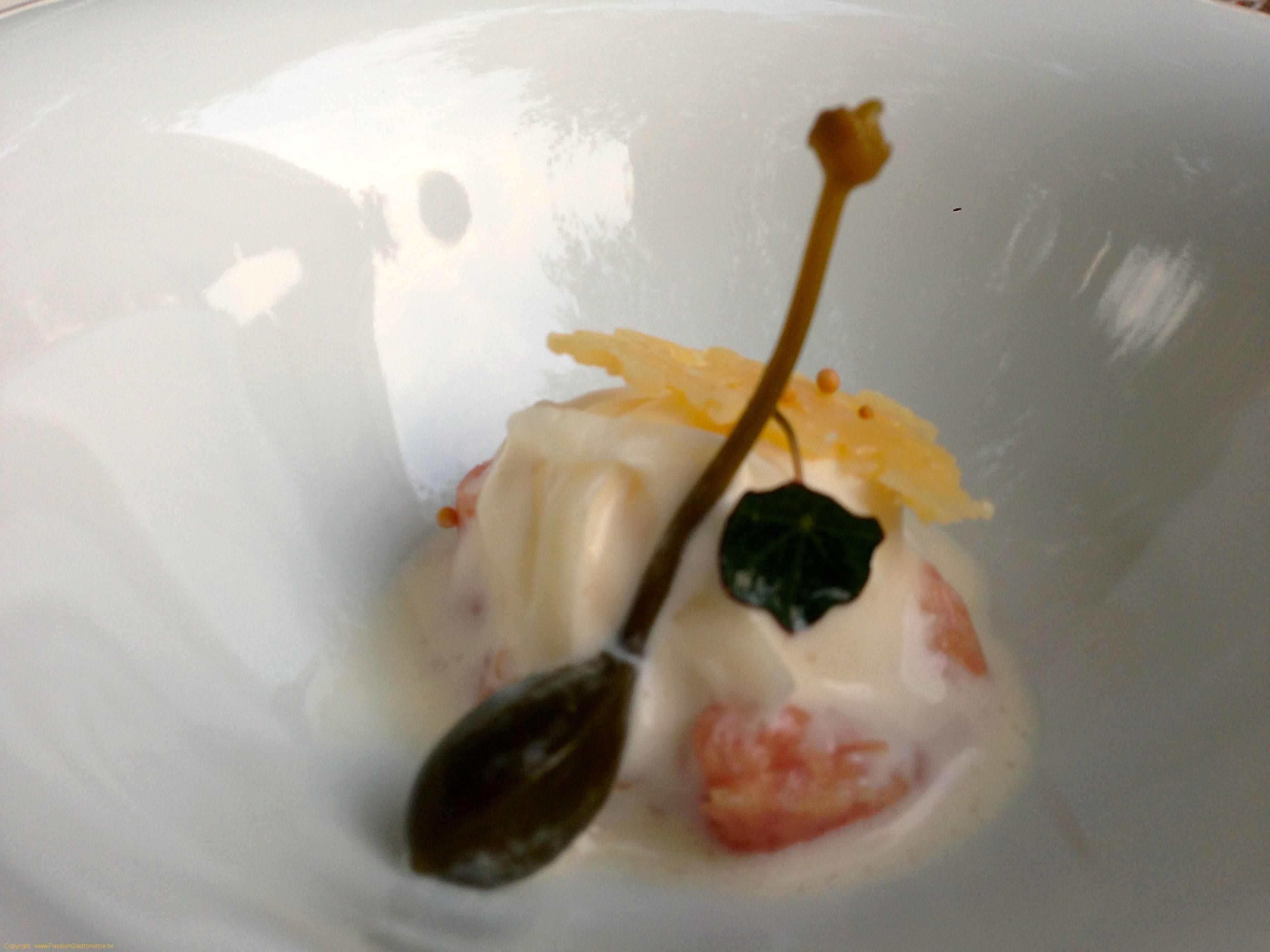 Mise en bouche : Sorbet parmesan, caprons et capucines