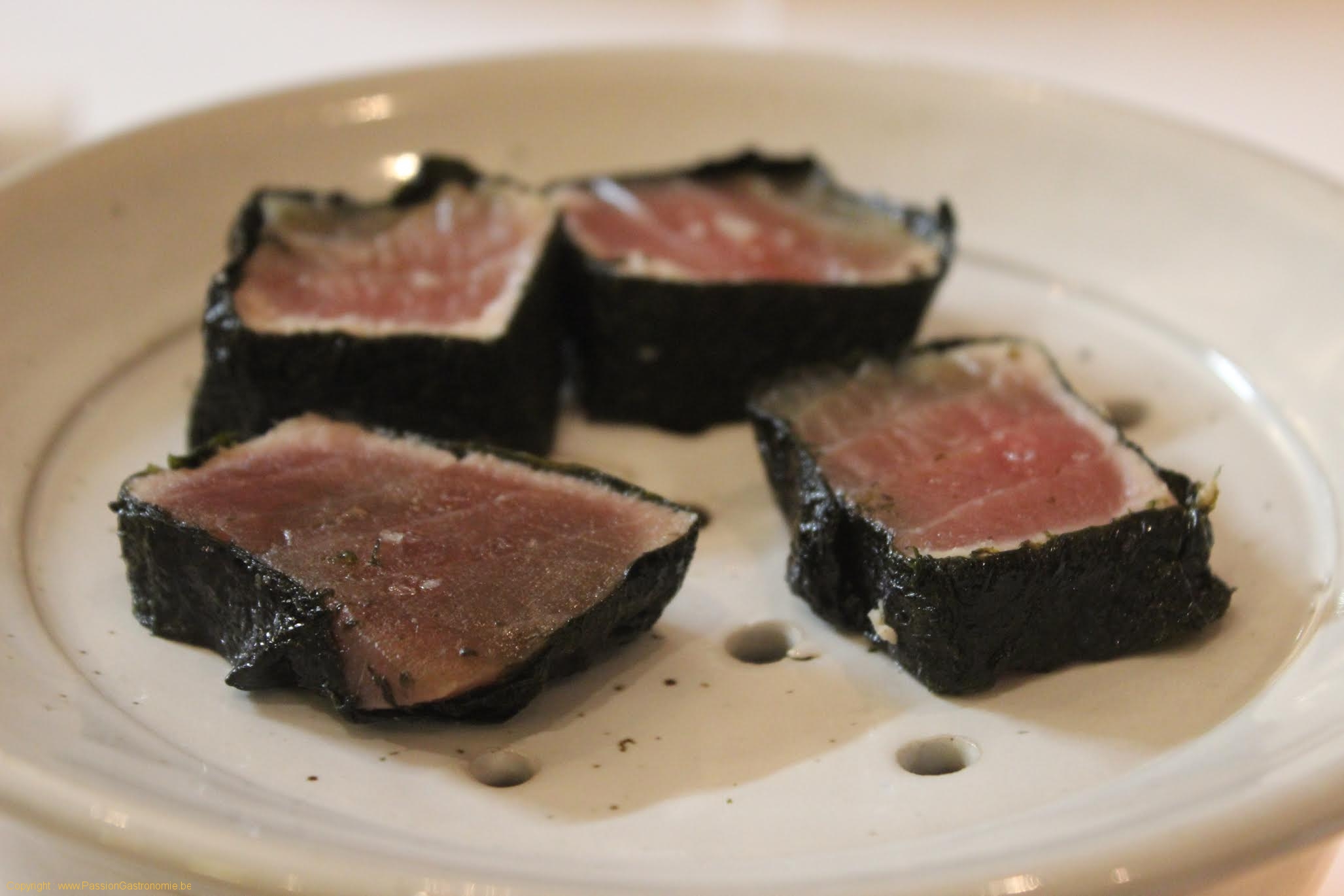 Mise en bouche : Chips à l’algue de Nori, mousse de hareng