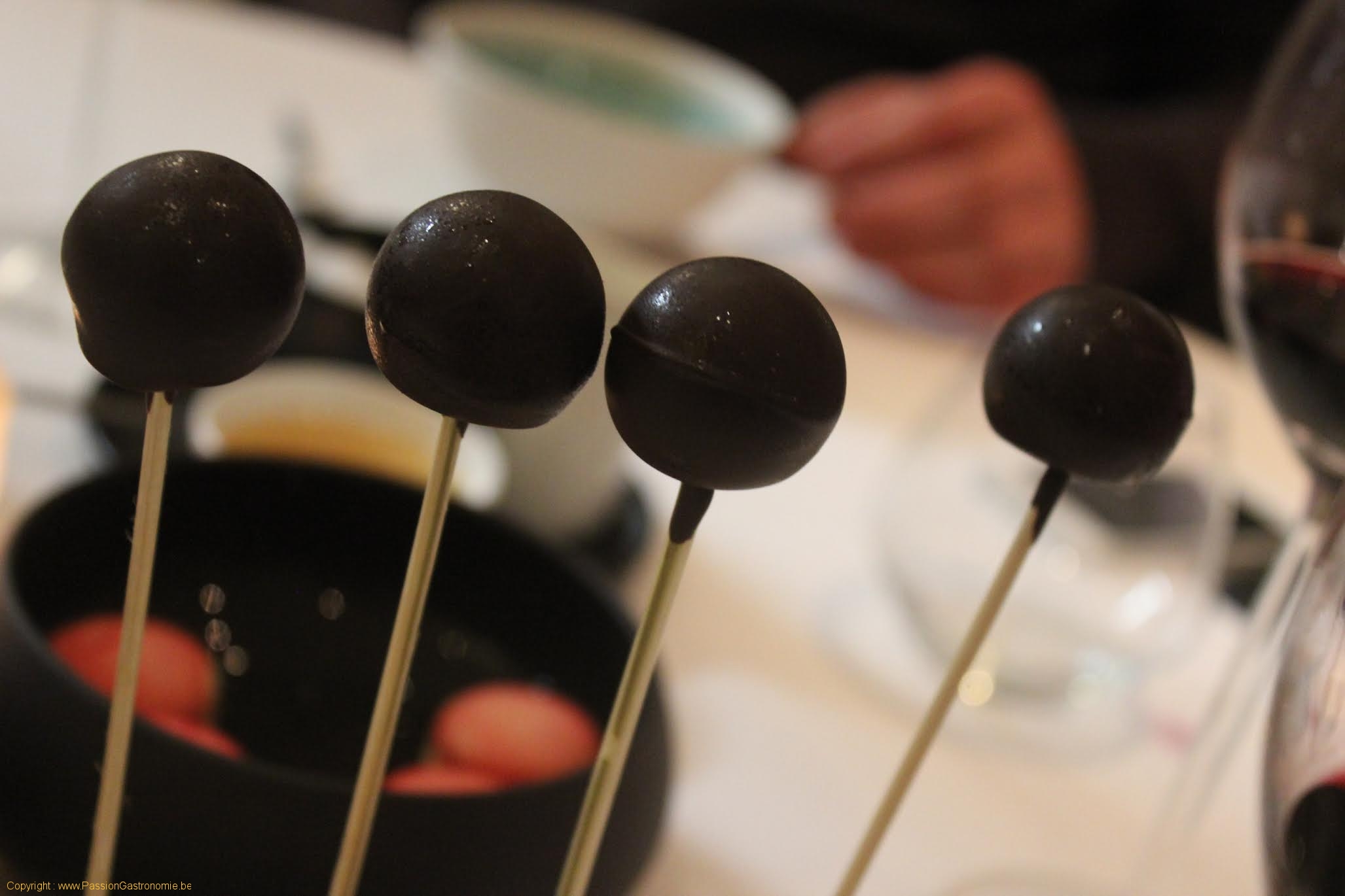 Second vague de dessert : - Pomme confite et betterave rouge - Ganache Chocolat - Chicon, cannelle, crème vanille givrée @Délice du Jour
