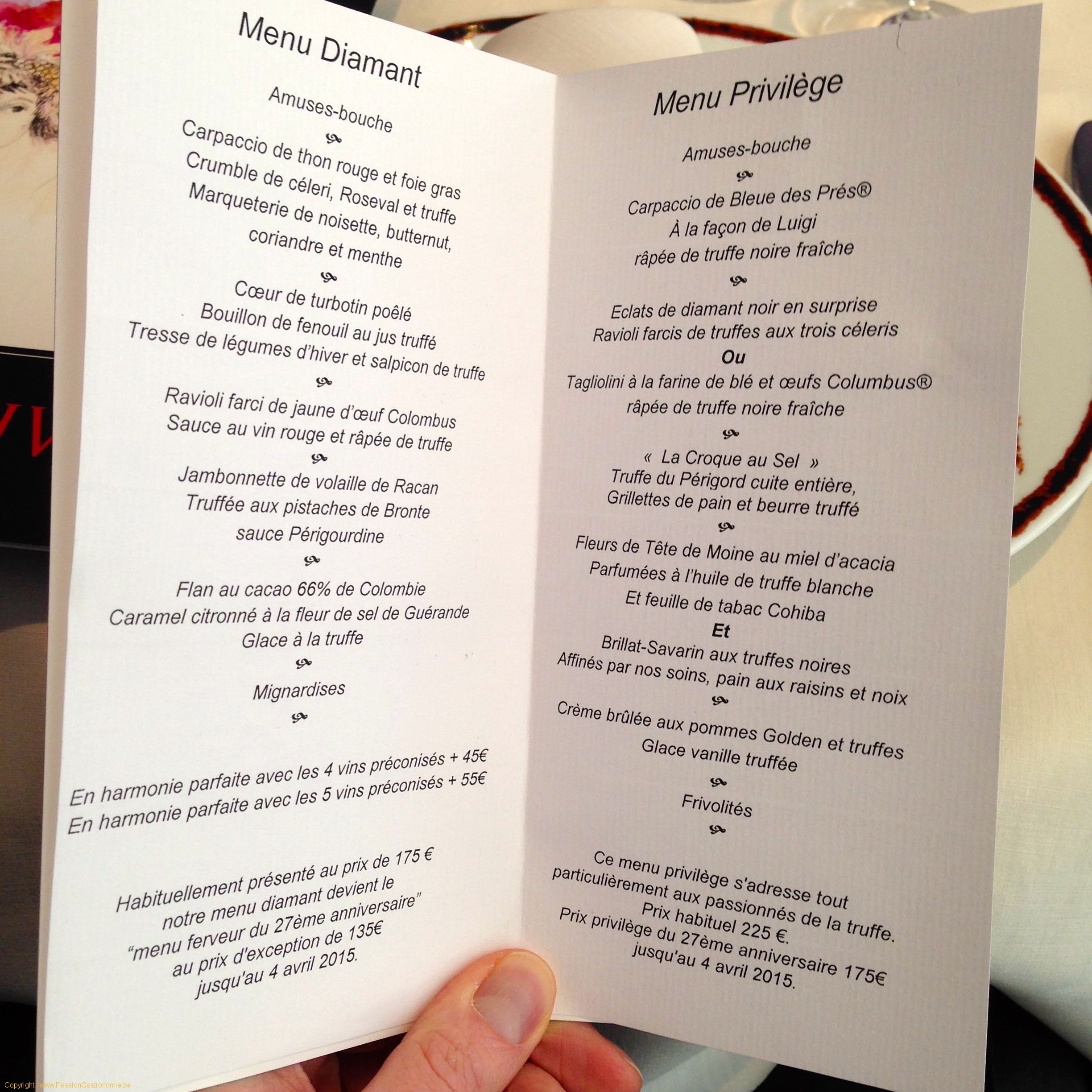 – Le menu Diamant à 135 euros au lieu de 175 euros