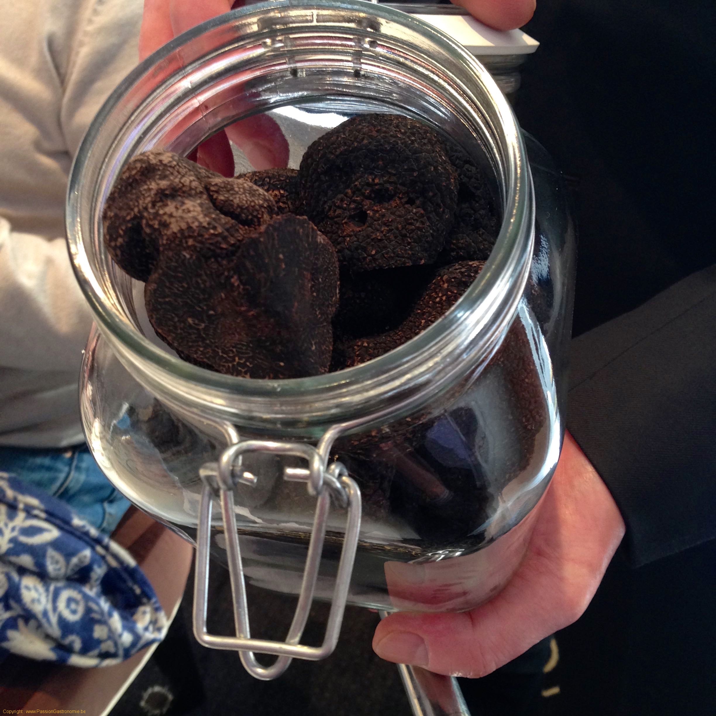 Et comme son nom l’indique, on y sert de la….truffe ! C’est d’ailleurs une des premières choses que le patron, Luigi Cicirello, vous montrera : un beau bocal rempli de magnifiques diamants noirs d’un beau calibre et magnifiquement odorantes. Cela fait partie de l’état d’esprit que Luigi souhaite insuffler dans cette vénérable maison : un peu de show autour de la truffe et ce, pour épater et mettre en appétit les clients.