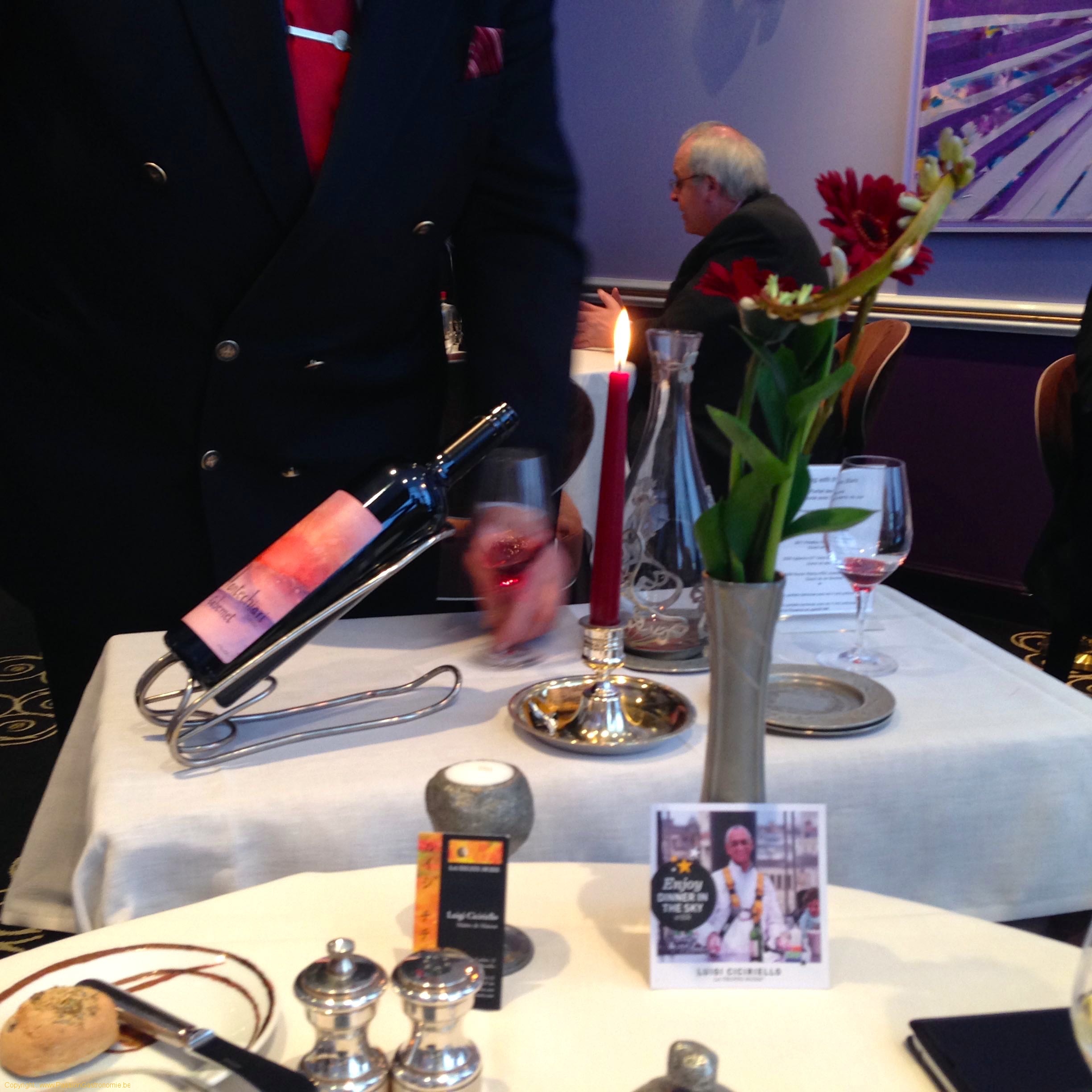 Le vin est servi par un sommelier qui arbore la grappe et aime faire le show en décantant les bouteilles. Je parle de show car le vin était de 2009. Et quand je lui ai demandé si ce vin présentait souvent du dépôt (c’est plus rare pour un jeune millésime mais cela arrive et cela aurait expliqué l’usage de la bougie), la réponse fût éloquente : « non mais on ne sait jamais ». Me répondre que c’était pour l’aérer aurait été la bonne réponse à me donner mais elle n’est pas venue.