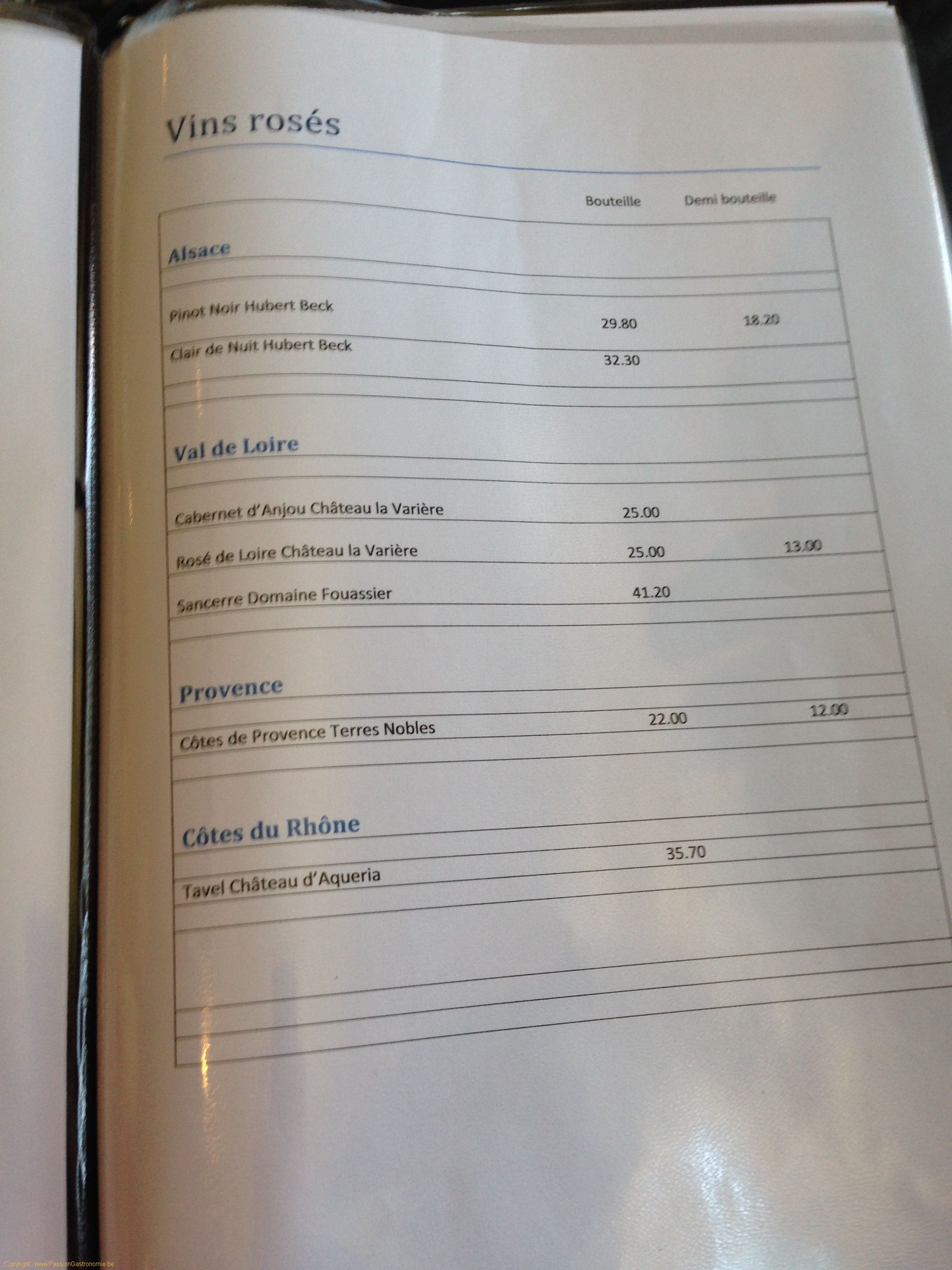 Carte des vins @La Ferme des 4 Saisons