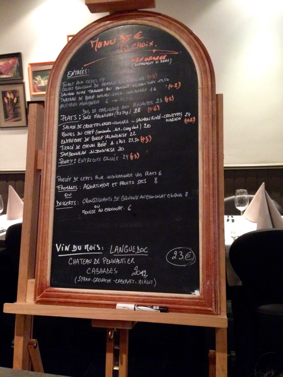Au niveau de la cuisine proposée, je la qualifierais de cuisine classique roborative faisant la part belle aux produits qui donnent du goût : beurre et crème en tête. C’est aussi un des rares restaurants à proposer de la viande de cheval et de poney. Quelque soit le plat, on sent que les produits sont de qualité, frais et travaillés.Ce n’est pas du gastronomique, ce n’est pas une cuisine complexe complexe : c’est simple, classique et gourmand.