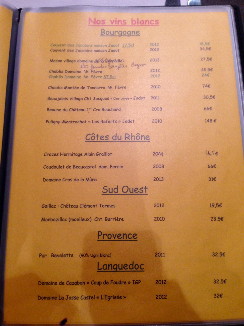 Carte des vins @Chez Duche