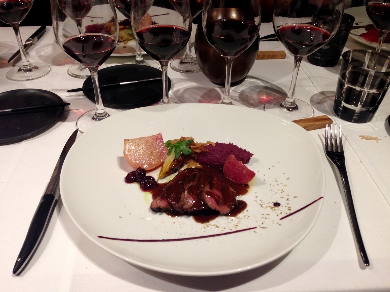 Gigue de chevreuil, poivrade au pain d'épices, chicon braisé à la triple Caulier, cassis et airelle @Alain Bianchin