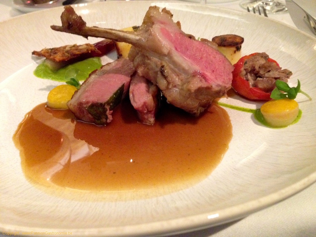 Agneau de Sisteron, courgette, basilic, mini poivron confit