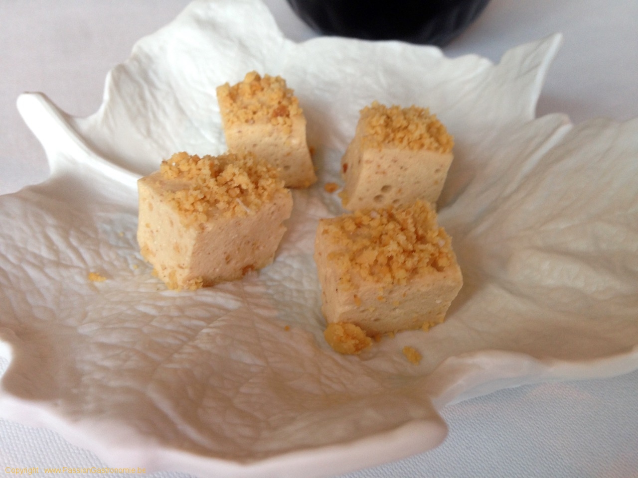 Mises en bouches : joue de boeuf, espuma de burrata. Déclinaison sur la fraîcheur de carottes et coriandre