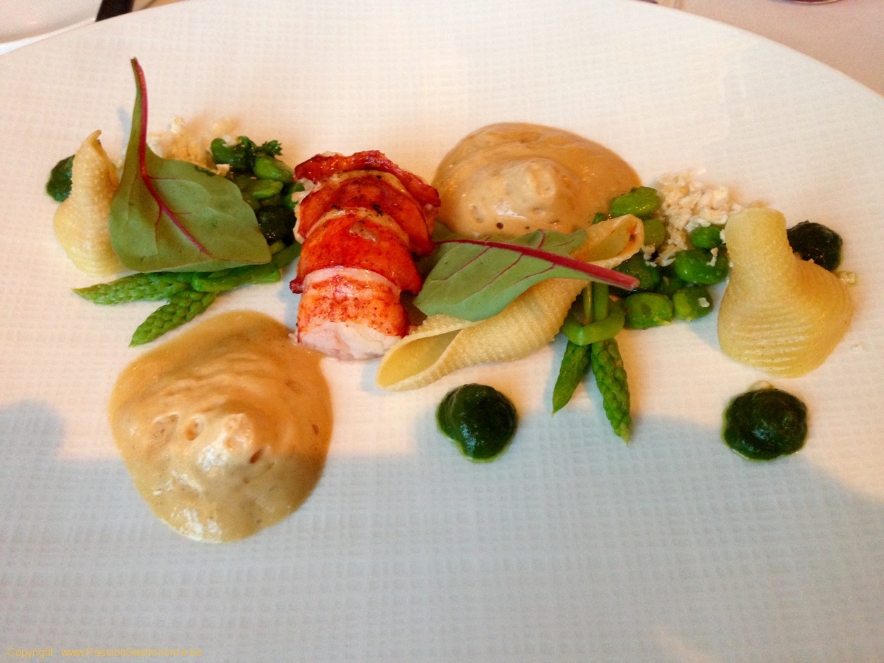 Homard rôti, pâte fraiche, asperges sauvages, bisque