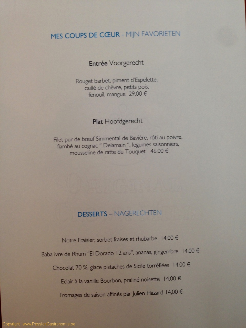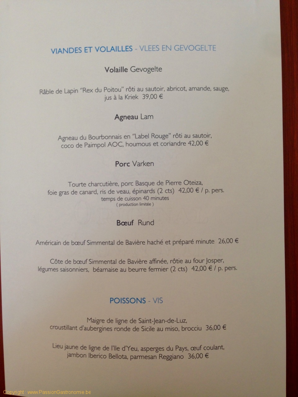 Carte du restaurant Bozar Brasserie à Bruxelles @Bozar Brasserie