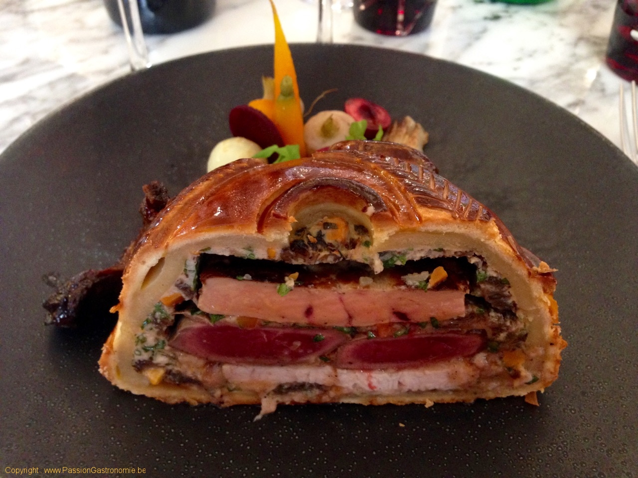 Pithiviers : mousseline de veau, ris de veau, cuisse de pigeon rôties, foie gras et quelques légumes @Bozar Brasserie