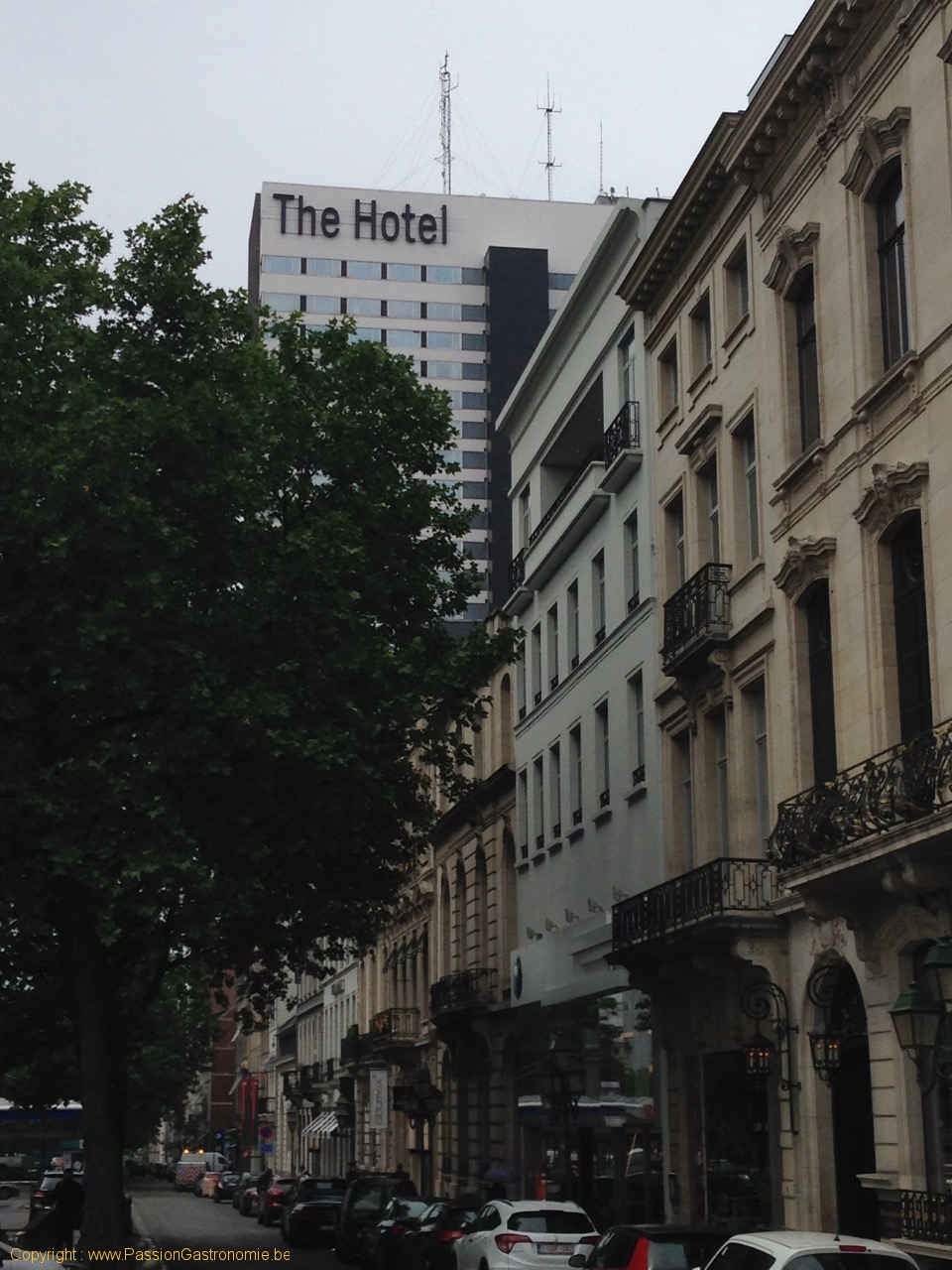 The Restaurant à The Hotel Bruxelles. Le mot anglais « The » utilisé dans ce contexte signifie « Le » dans le sens de la référence, la chose unique. Autrement dit l’ambition est clairement affichée en long, en large et en grand à commencer par la façade de l’hôtel :