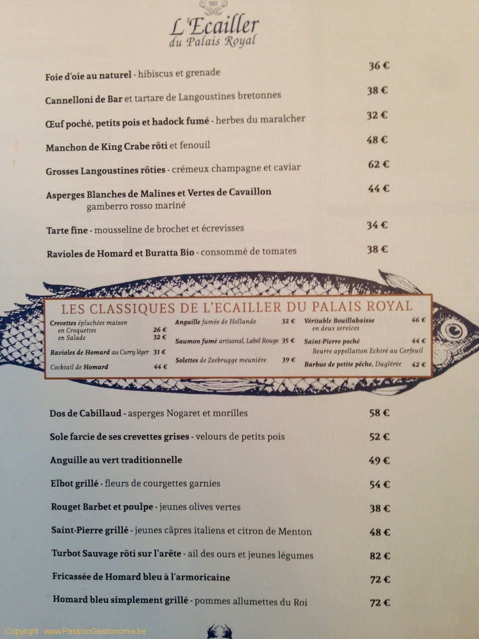 La carte au restaurant gastronomique l'Ecailler du Palais Royal @L'Ecailler du Palais Royal