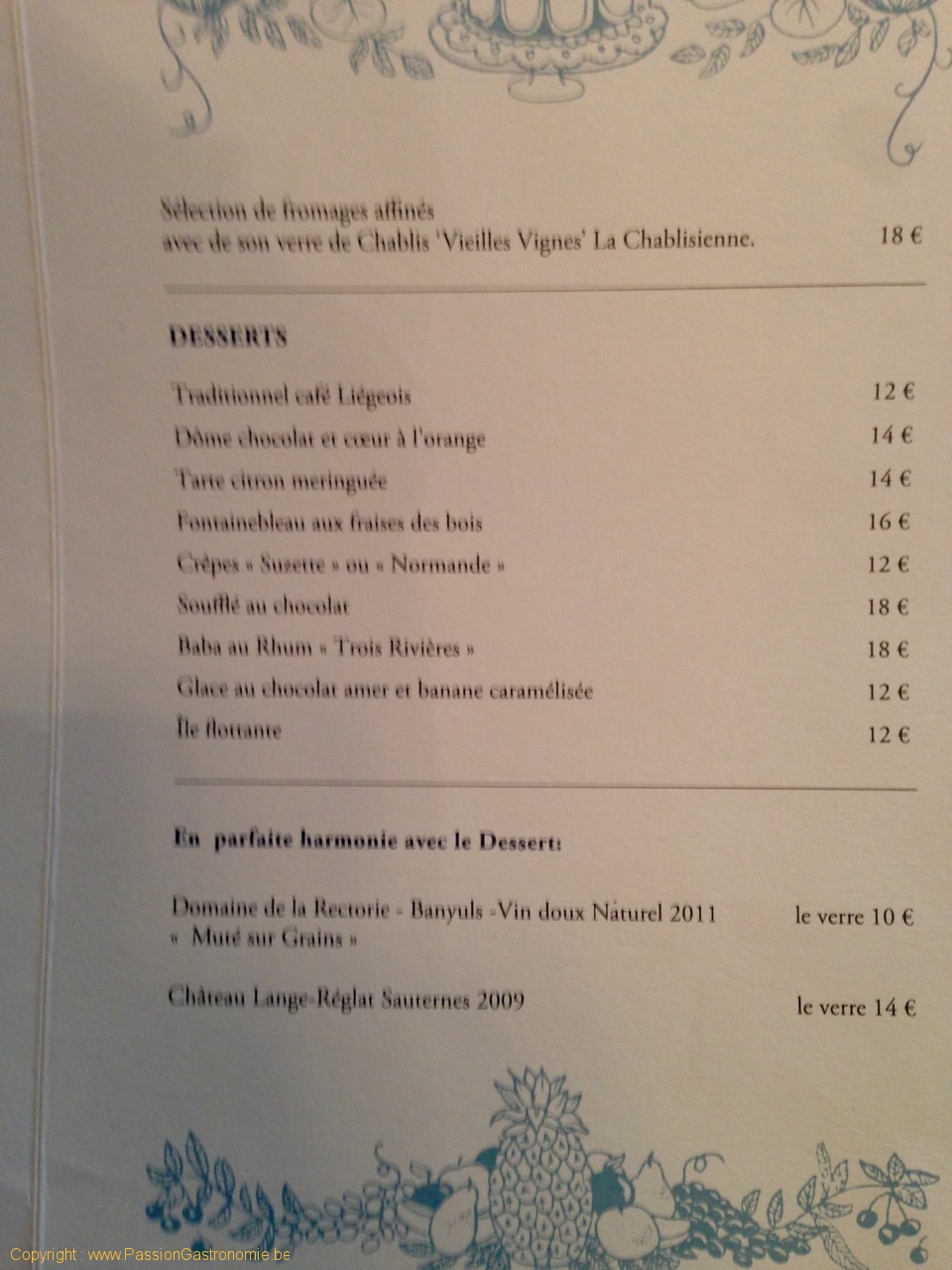 La carte des dessert au restaurant gastronomique l'Ecailler du Palais Royal @L'Ecailler du Palais Royal