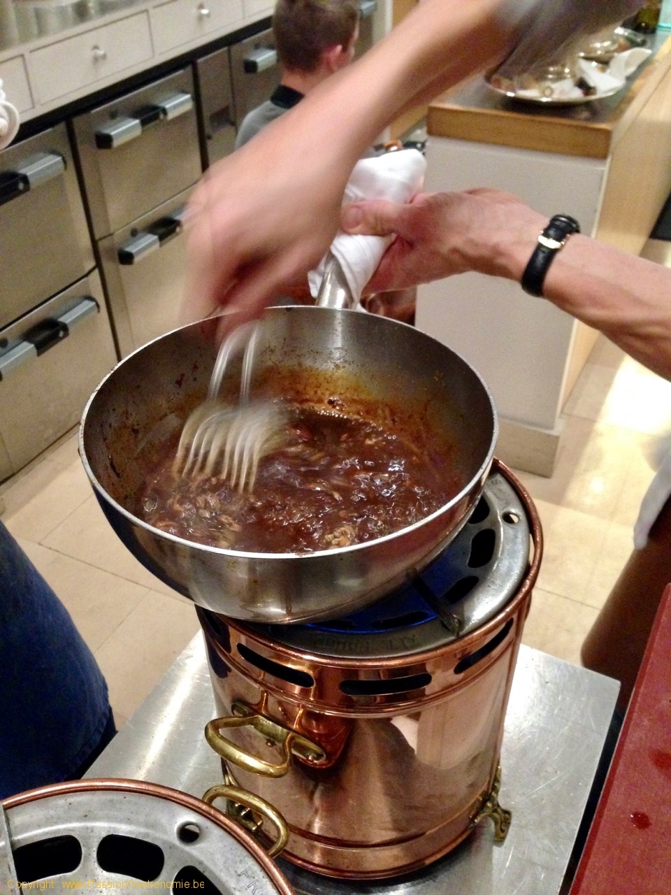 Cette tradition, hélas presque disparue de la circulation, est déjà une raison suffisante pour aller manger au restaurant Les Eleveurs. Quand Andy De Brouwer vient vous chercher pour découper devant vous le pigeonneau et préparer la sauce à la riche, c’est un moment qu’on n’oublie jamais.