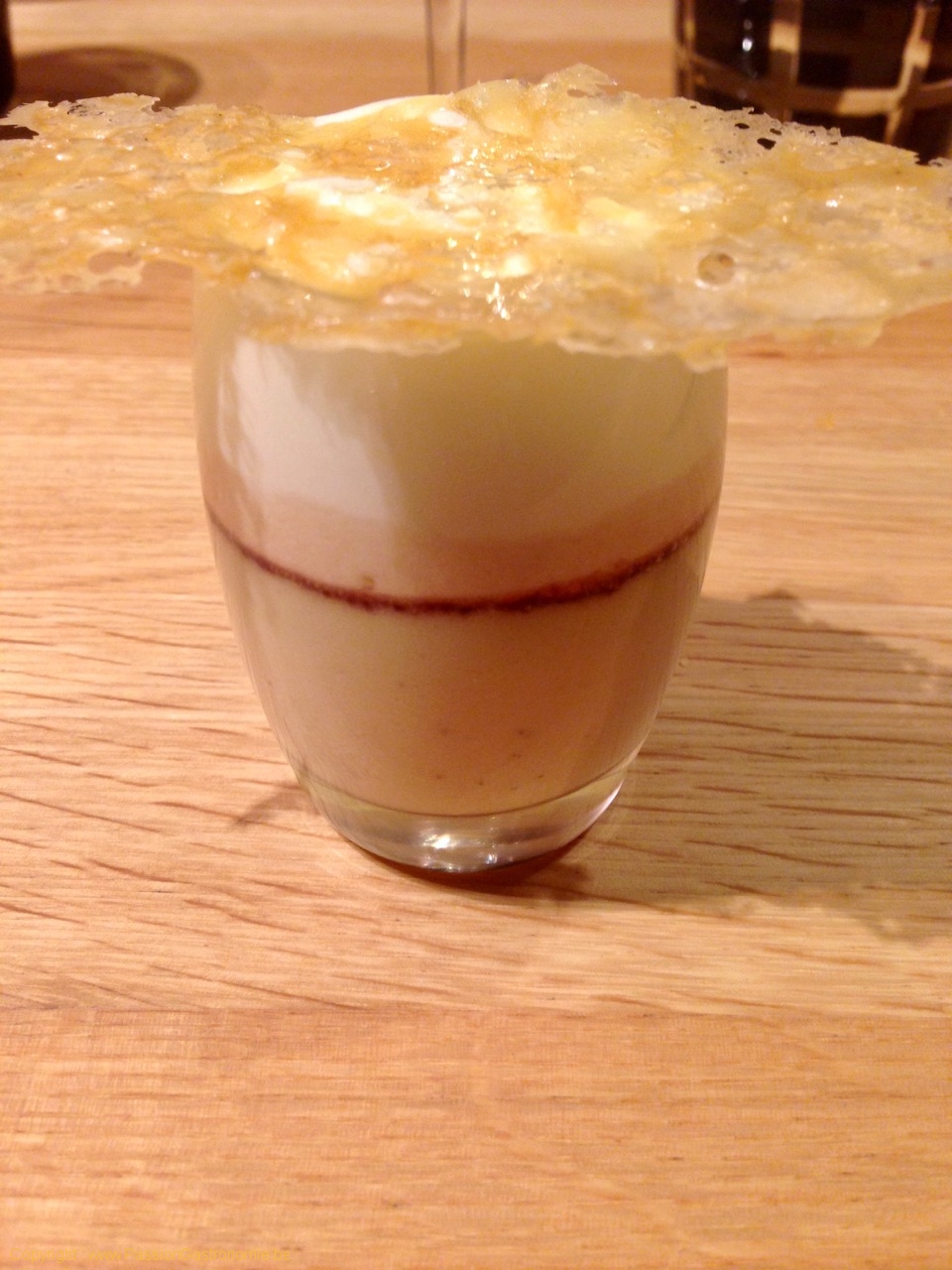 Oeuf à la coque, crevettes grises, écume (mise en bouche)
