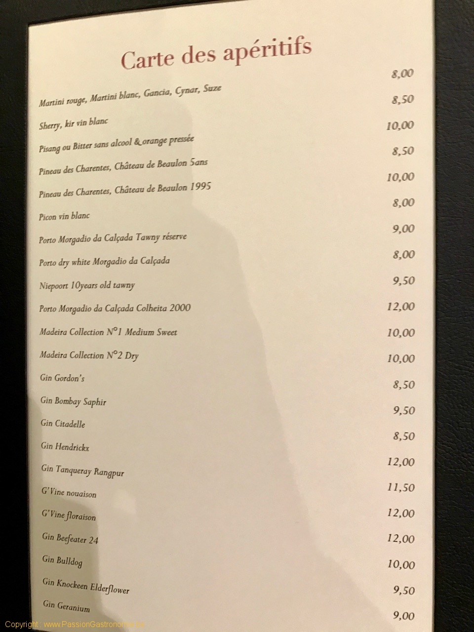 Pour les digestifs, la carte des vins de Philippe Meyers se décline au travers de pas mal de pages. J’en ai rarement vu autant. D’ailleurs on n’en attendait pas moins au vu des bouteilles qui trônent au milieu de la salle.