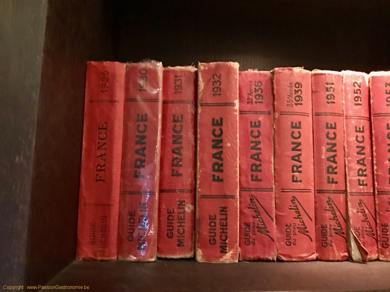Ce qui frappe particulièrement le fan de gastronomie, c’est cette bibliothèque contenant la collection de guides Michelin du chef Philippe Meyers.