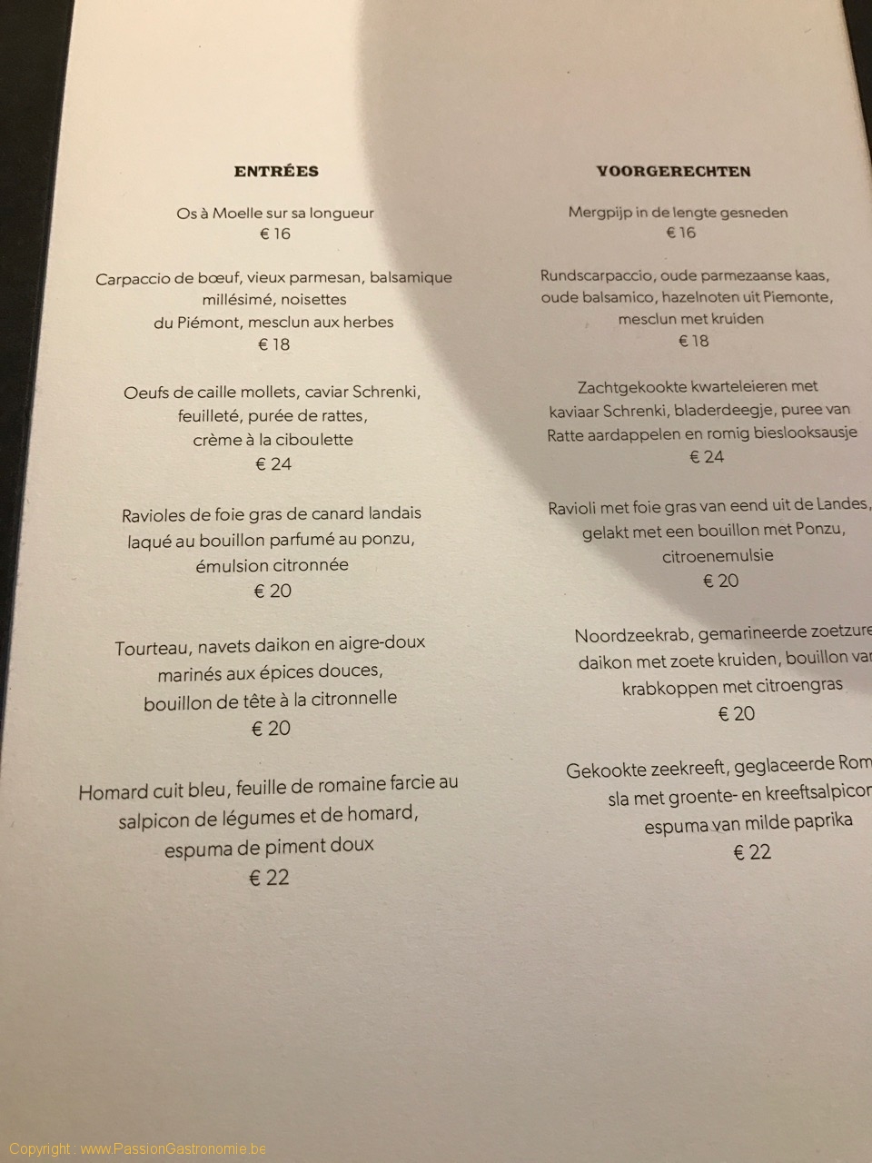 La carte des entrées @Colonel