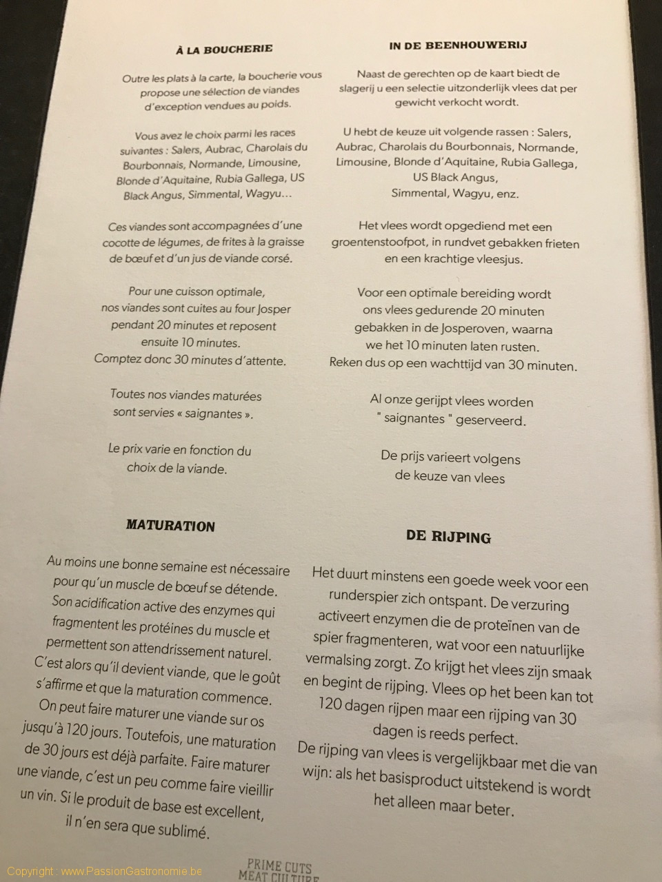 Une fois installé à table de Colonel, la viande est à nouveau mise à l’honneur avec maintes explications sur les différentes races :