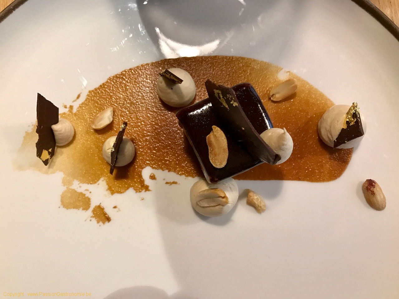Comme un snickers : entremets au chocolat, praliné aux cacahuètes, émulsion de caramel beurre salé @Colonel