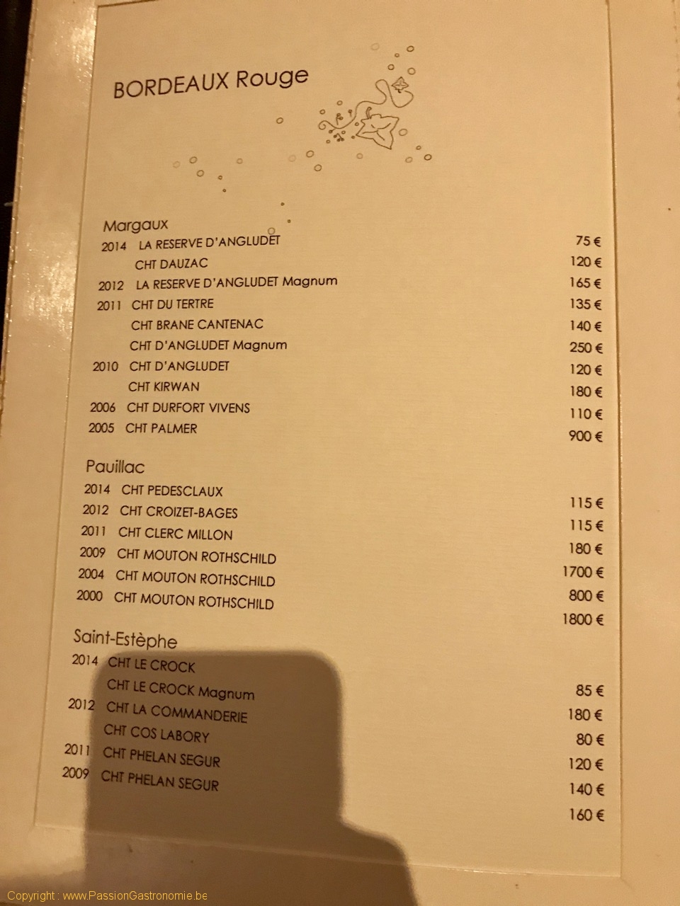Mais, en cherchant bien, on peut trouver l’une ou l’autre bonne pioche (ou erreur ?). Par exemple, la Côte-Rôtie Bassenon de Yves Cuilleron est proposée à 90 euros à la carte alors que cette bouteille coûte un peu moins de 40 euros. C’est d’ailleurs pour ce vin rouge que j’ai craqué.