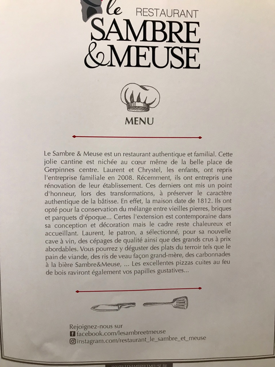 Bref, le restaurant Le Sambre et Meuse est une adresse où quantité, qualité et prix intéressants vont bien ensemble. Il faut certes bien sélectionner les plats car le niveau qualitatif est encore fort variable d’un plat à l’autre. Les pizzas sont, quand à elle, vraiment délicieuses.