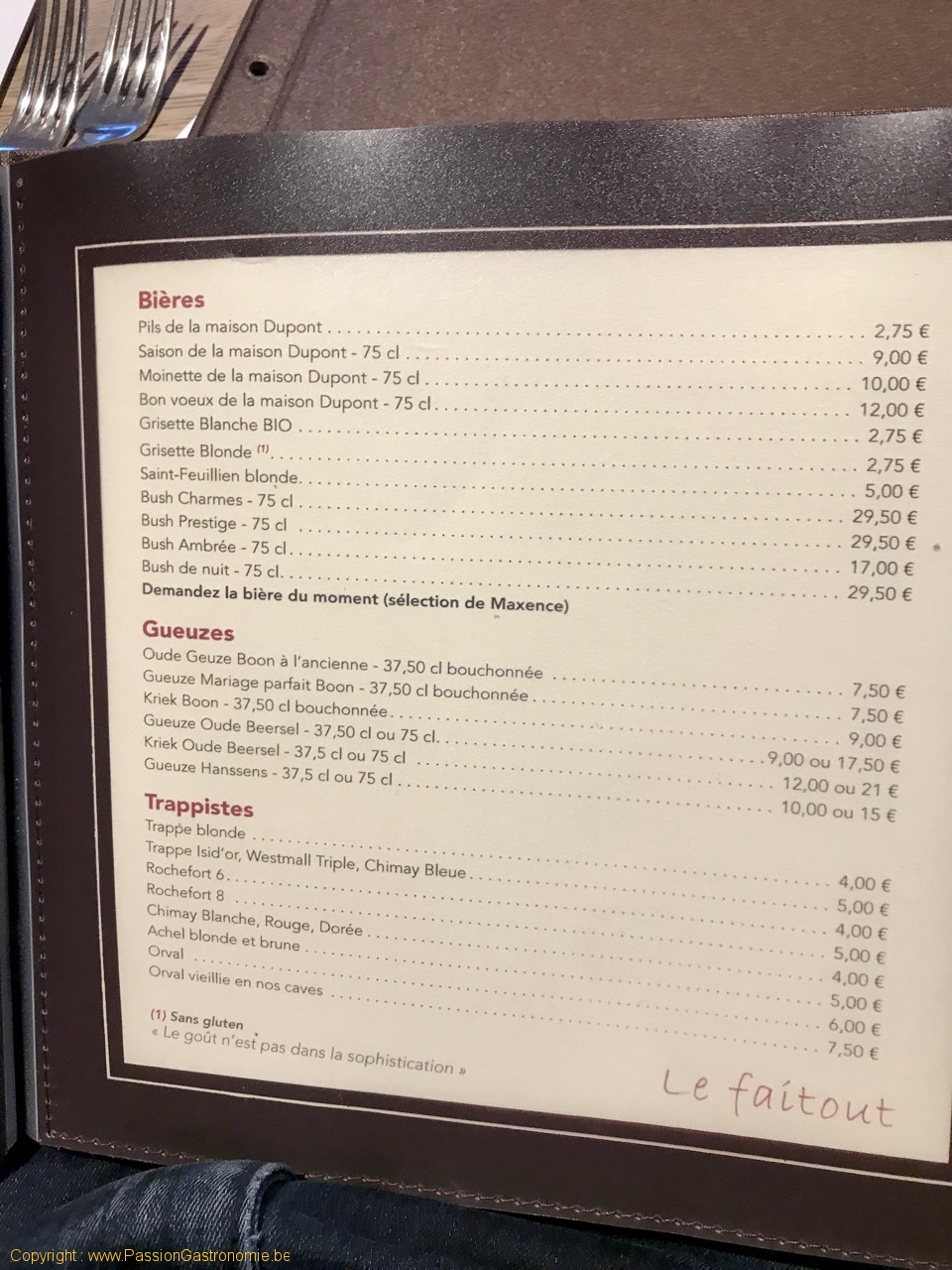 Mais, au moins, le Faitout prévient. On sait donc à quoi s’en tenir et on choisit donc en connaissance de cause de prendre le risque ou pas. Et si on n’a envie de prendre ni risque, ni vin « normal », on peut partir sur de la bière avec, notamment, le choix entre un Orval vieilli environ un an dans les caves du Faitout (7,5 euros) ou un Orval normal (6 euros).