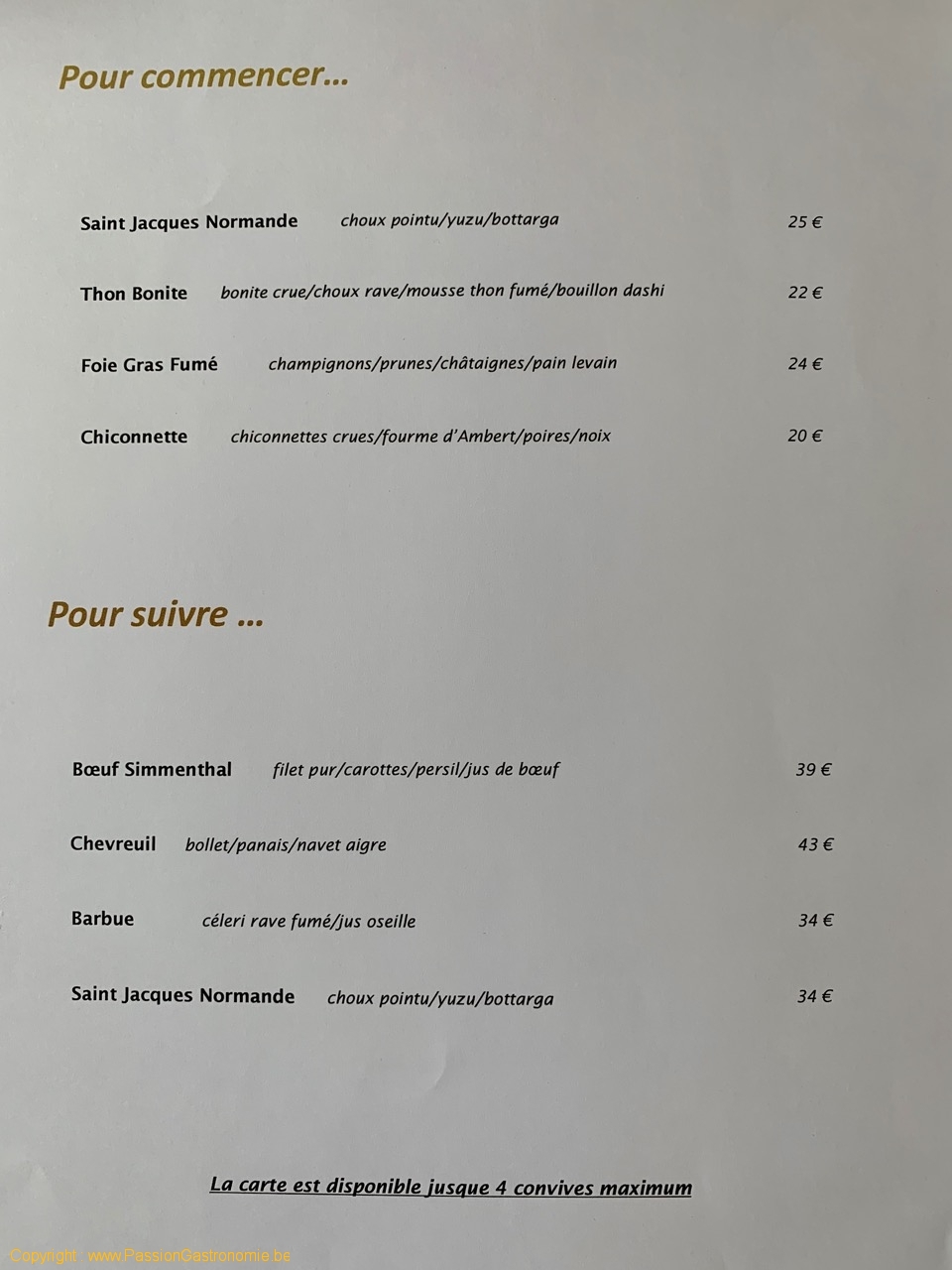 On ne peut pas vraiment juger la carte des vins d’un restaurant qui n’a même pas un mois d’existence. Laissons donc le temps au temps et faisons confiance au sommelier, Ricardo, qui a officié de nombreuse années au Prieuré Saint-Géry et qui y faisait de belles choses. Partant de rien, il a ici un beau challenge où il va pouvoir s’exprimer.
