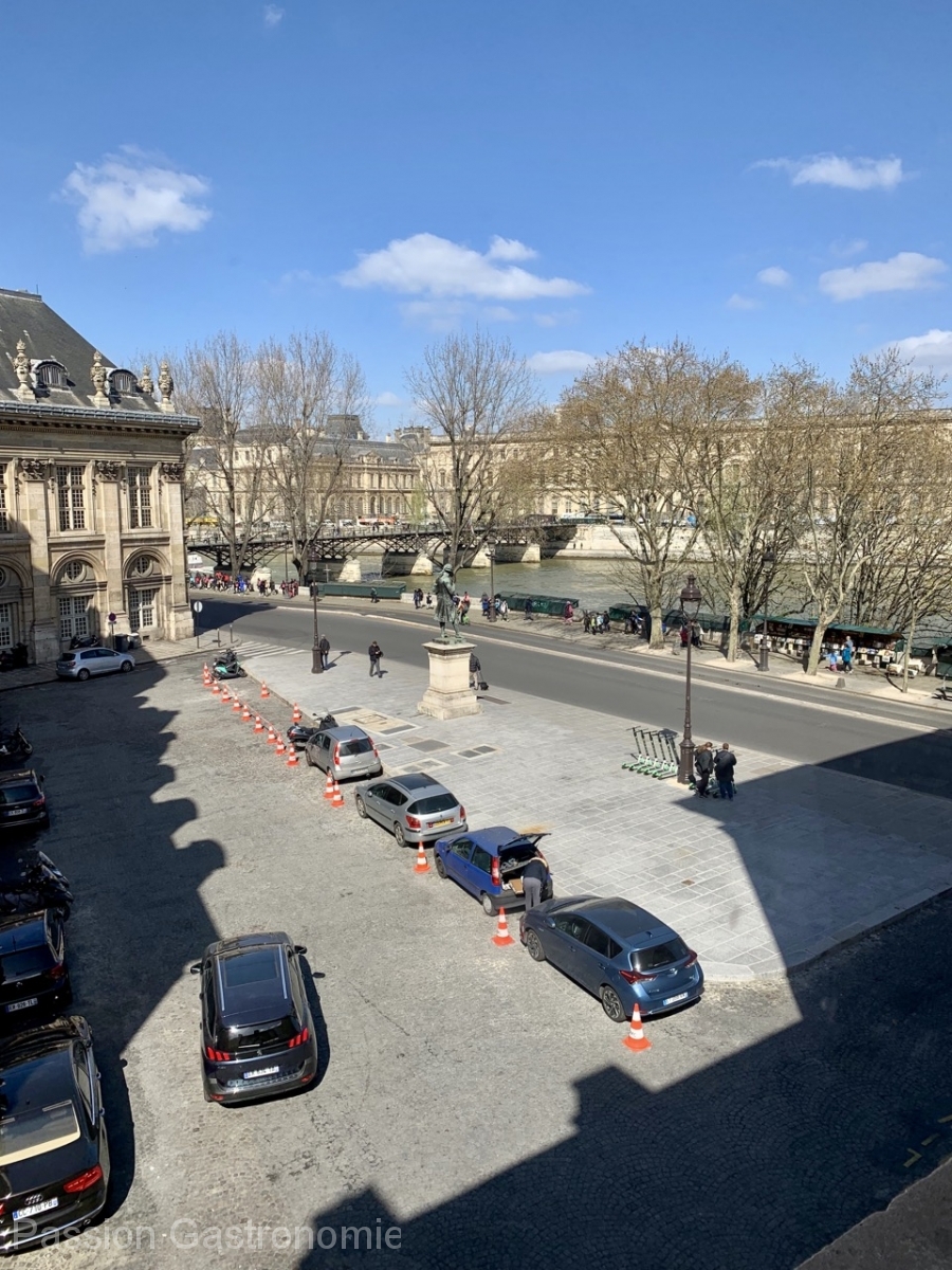 Pour une fois, on peut se réjouir que les cuisiniers, dont le métier est particulièrement difficile, bénéficient eux aussi de la splendide vue sur la Seine. Même s’ils n’ont probablement pas le temps de flâner aux fenêtres, travailler avec la lumière naturelle doit être clairement plus agréable que sous les néons d’une cave.