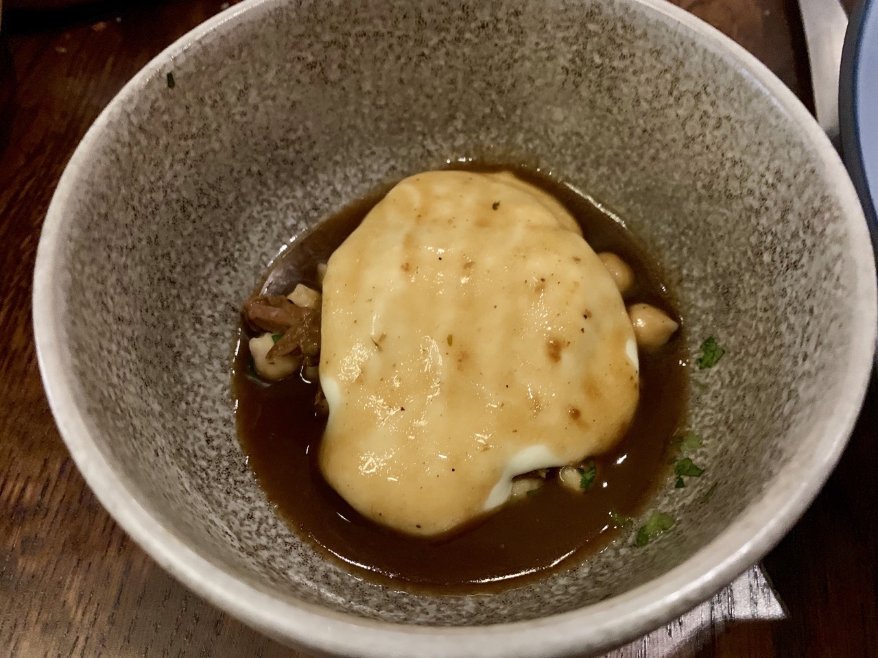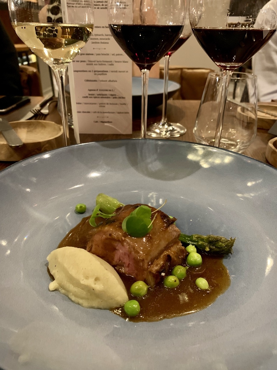 La cuisine de Fabrizzio Chirico, et c’est une bonne nouvelle, n’a pas changé. On retrouve ainsi toujours le plat signature décliné cette fois avec de l’agneau (au lieu de la queue de boeuf). C’était l’agneau d’Aveyron en deux façons : confit aux épices orientales / pois chiches