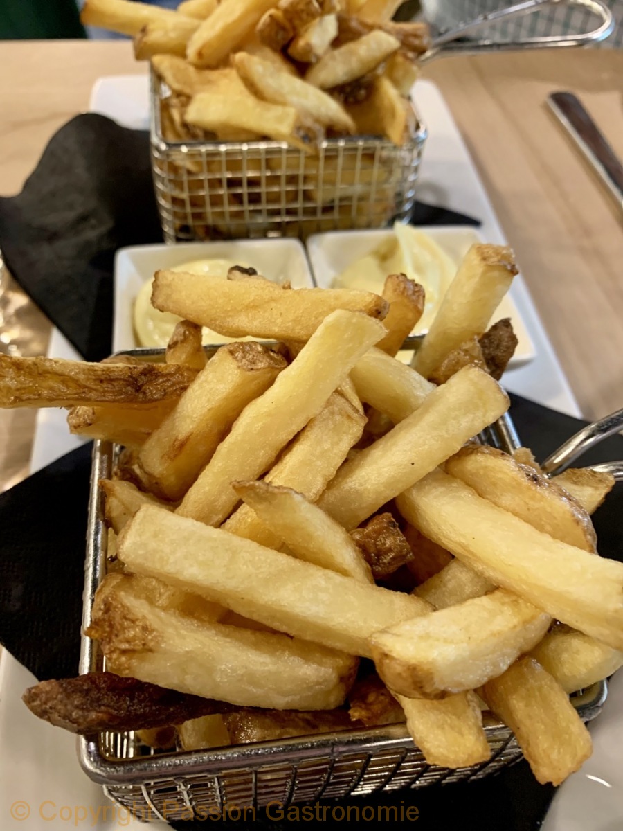 Mais il est dommage, quand un incident comme celui-là arrive (et cela peut arriver), de ne pas avoir le bon réflexe jusqu’au bout. Puisque deux filets purs doivent être recommencés, il ne faut alors pas servir les accompagnements (les frites en l’occurrence) pour ces deux assiettes là. Il faut en effet apporter une version refaite, et chaude donc, quand les nouveaux filets purs sont servis. Ce ne fût pas le cas.