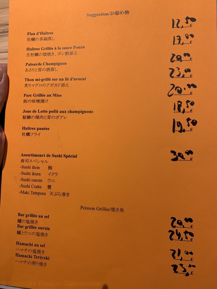 Le restaurant est fréquenté par de nombreux japonais, parlant japonais entre eux et avec le chef. C’est souvent le signe que vous êtes au bon endroit.