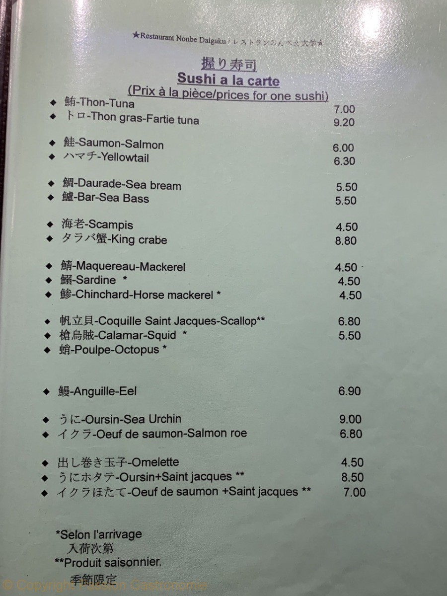 Quoiqu’il en soit, si j’ai envie de manger de la cuisine japonaise, je mettrais Nonbe Daigaku dans la liste des restaurants à considérer.