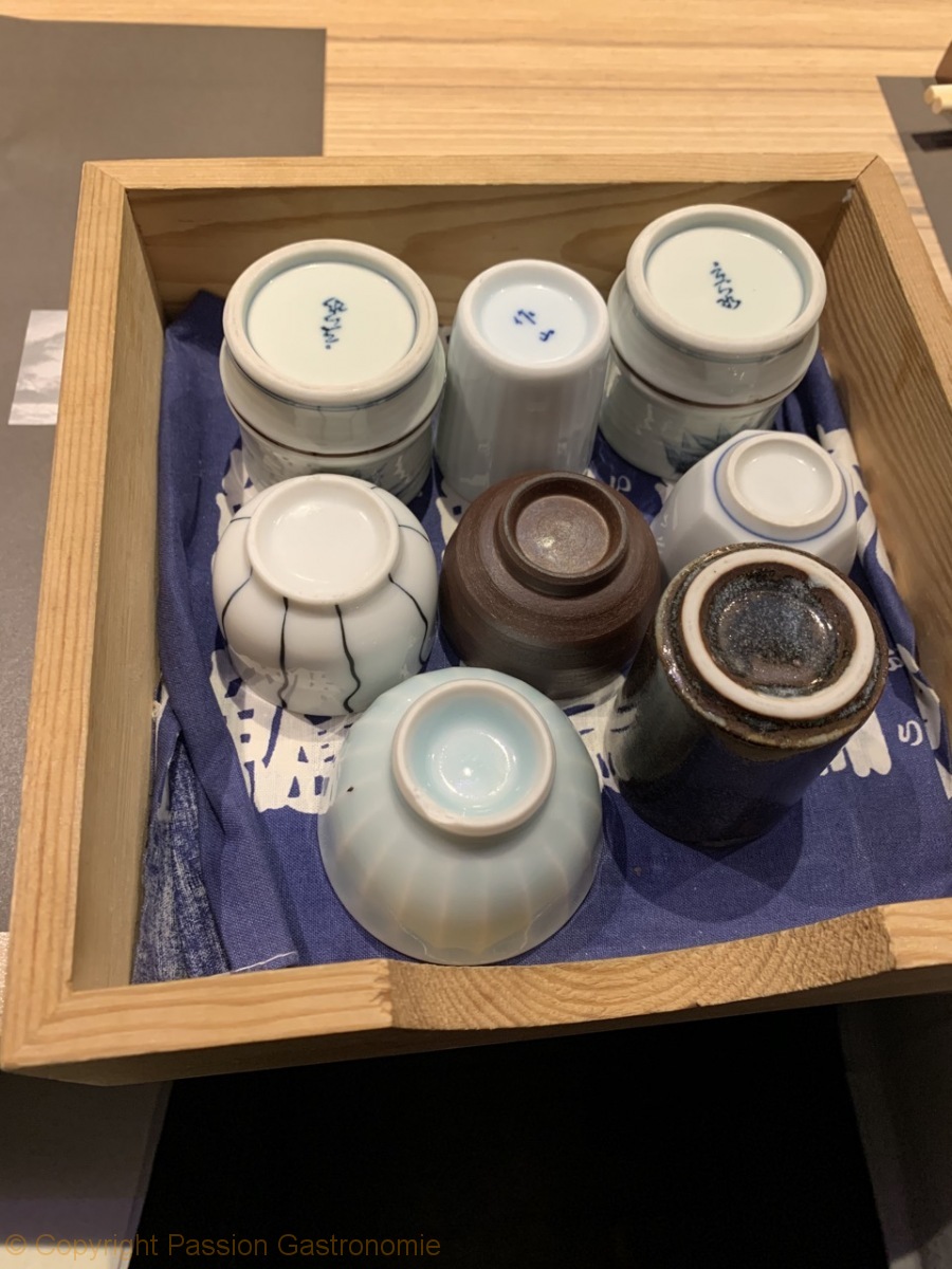 Choix de verres à saké @Restaurant Nonbe Daigaku