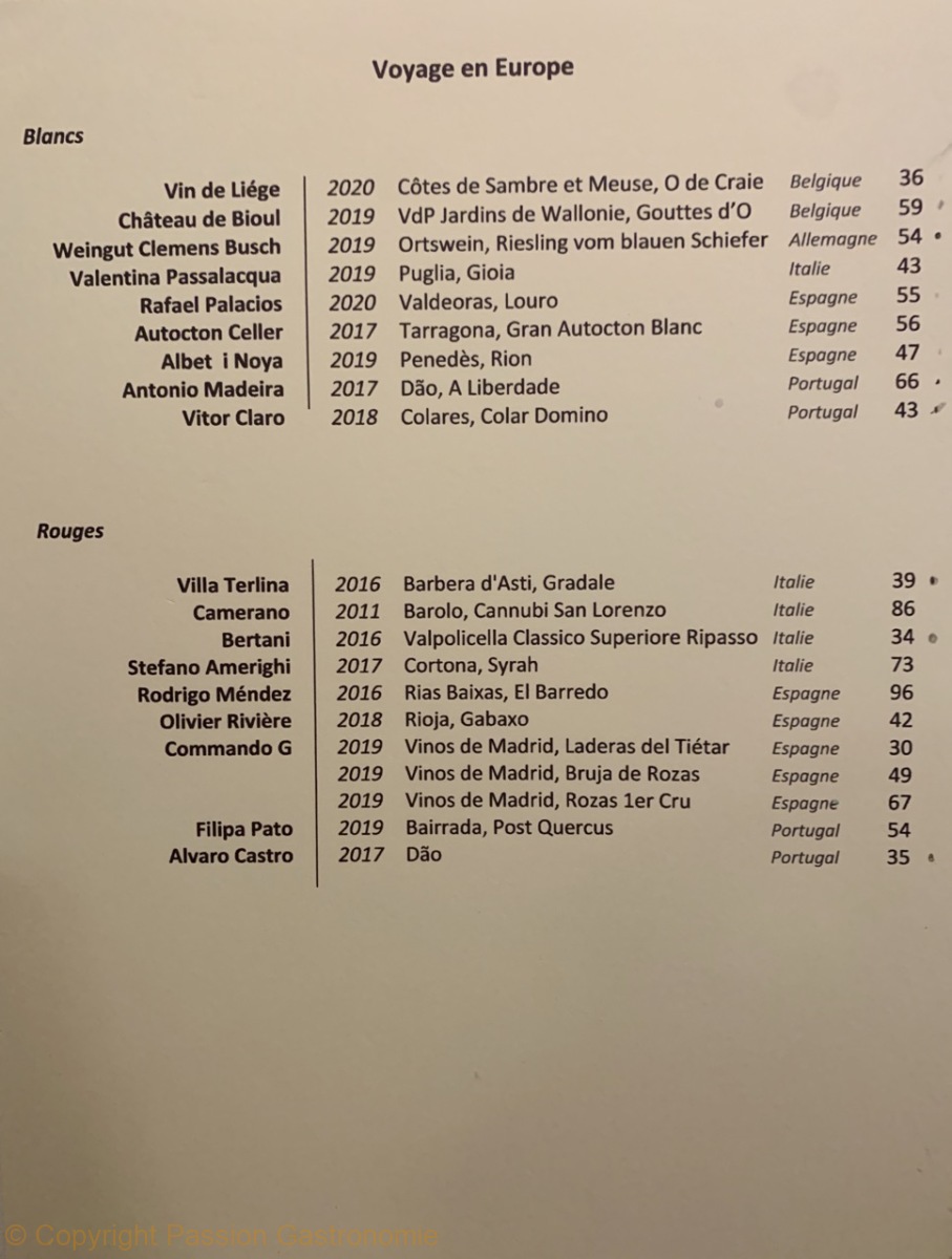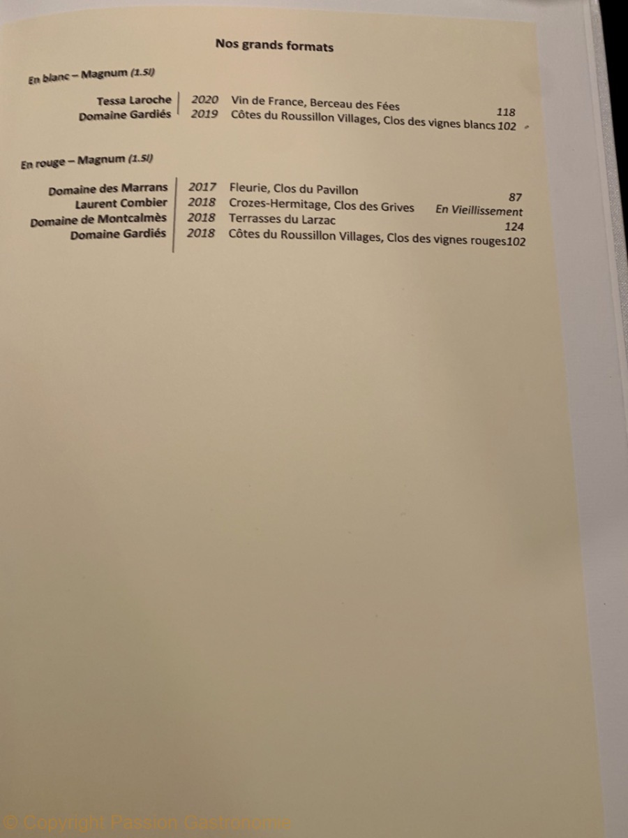 Pour les oenophiles, il y a souvent un choix cornélien en ce qui concerne les vins. On est tenté, et encore plus avec une grande table, de prendre les vins à la carte. On peut en effet y trouver quelques pépites, quelques vins confidentiels, quelques plus vieux millésimes ou quelques vins plus prestigieux. Mais, d’un autre côté, on boit alors souvent les mêmes choses et on a ce sentiment de tourner en rond (même si les vins sont excellents).