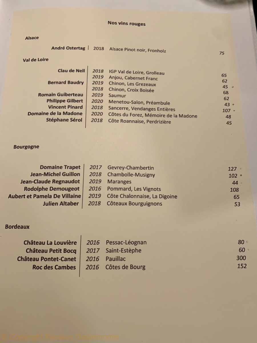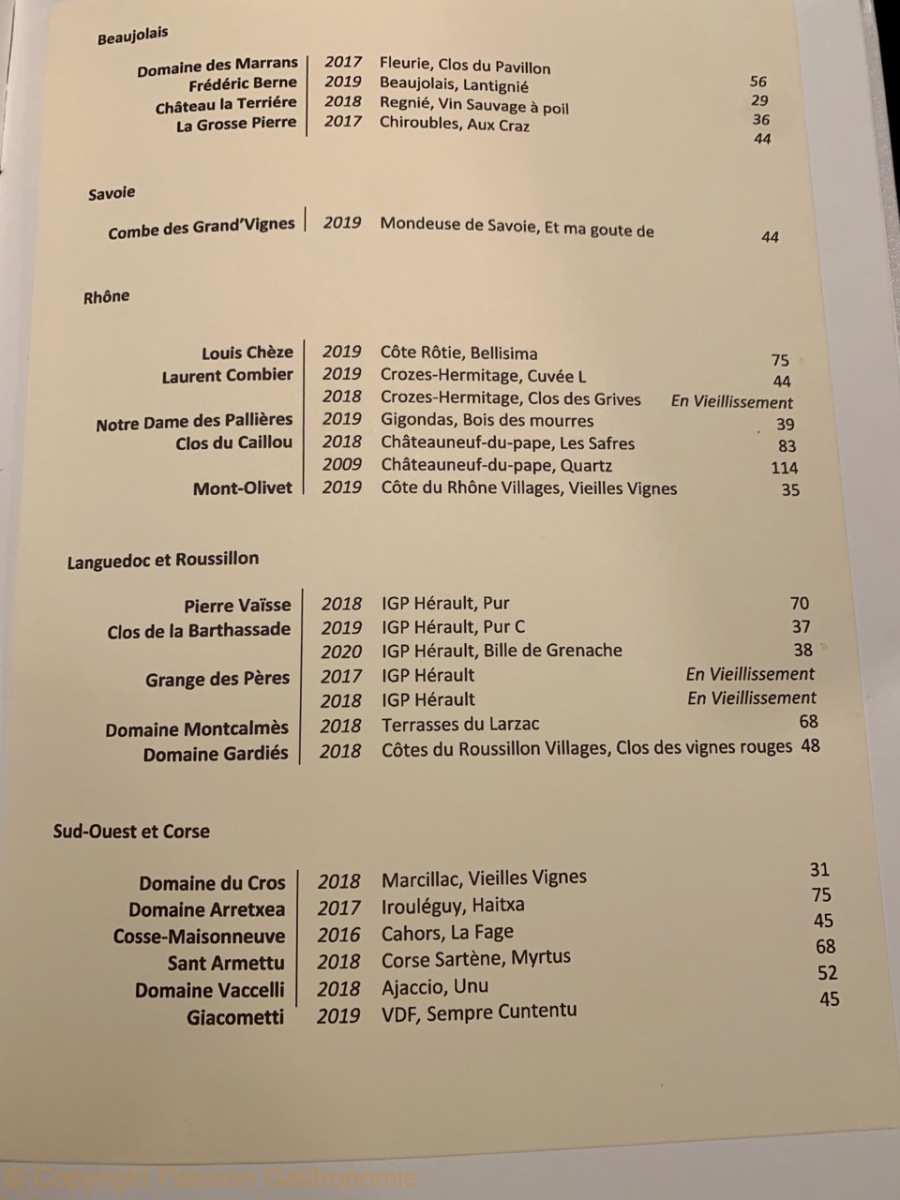 L’autre option, c’est opter pour le forfait vin et laisser le sommelier faire découvrir ses accords et sa sélection. Il y a alors bien évidemment plus de déceptions, plus de « petits vins » (à bas prix) mais, aussi, plus de surprises.