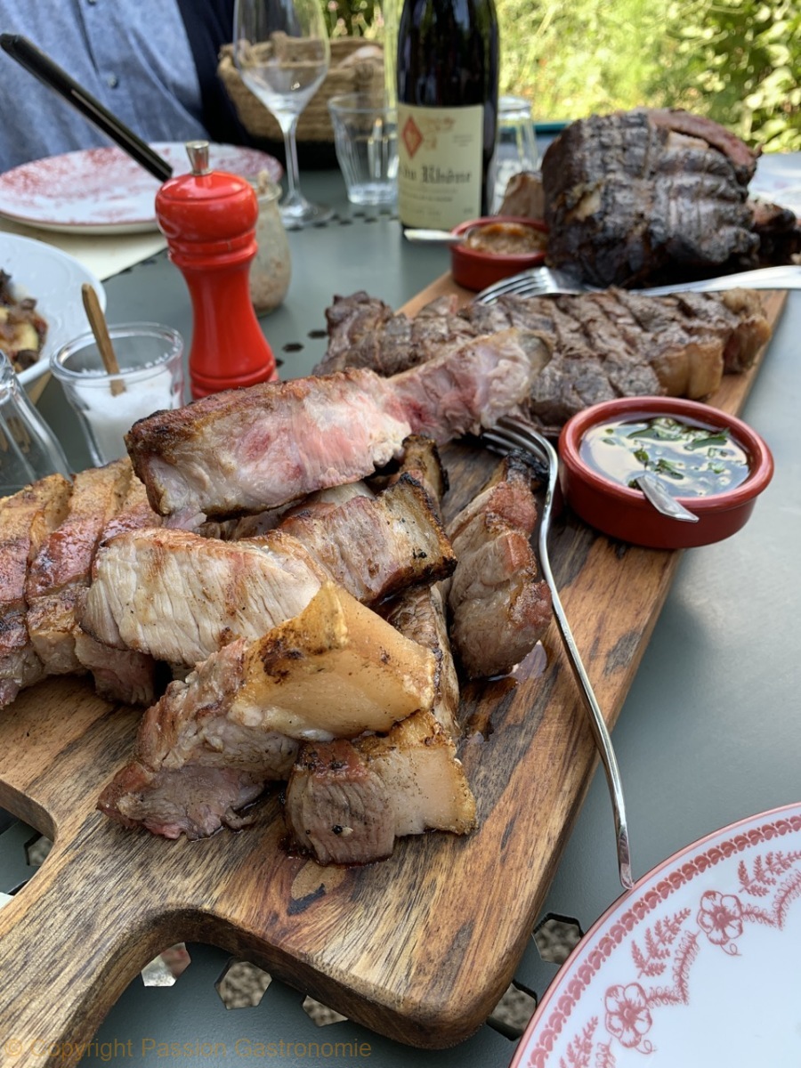 Notre choix du jour s’est porté sur la côte de cochon de la ferme des Carmes (800g), le faux-filet de boeuf (500g) et les ribs de porc confit dans le fumoir