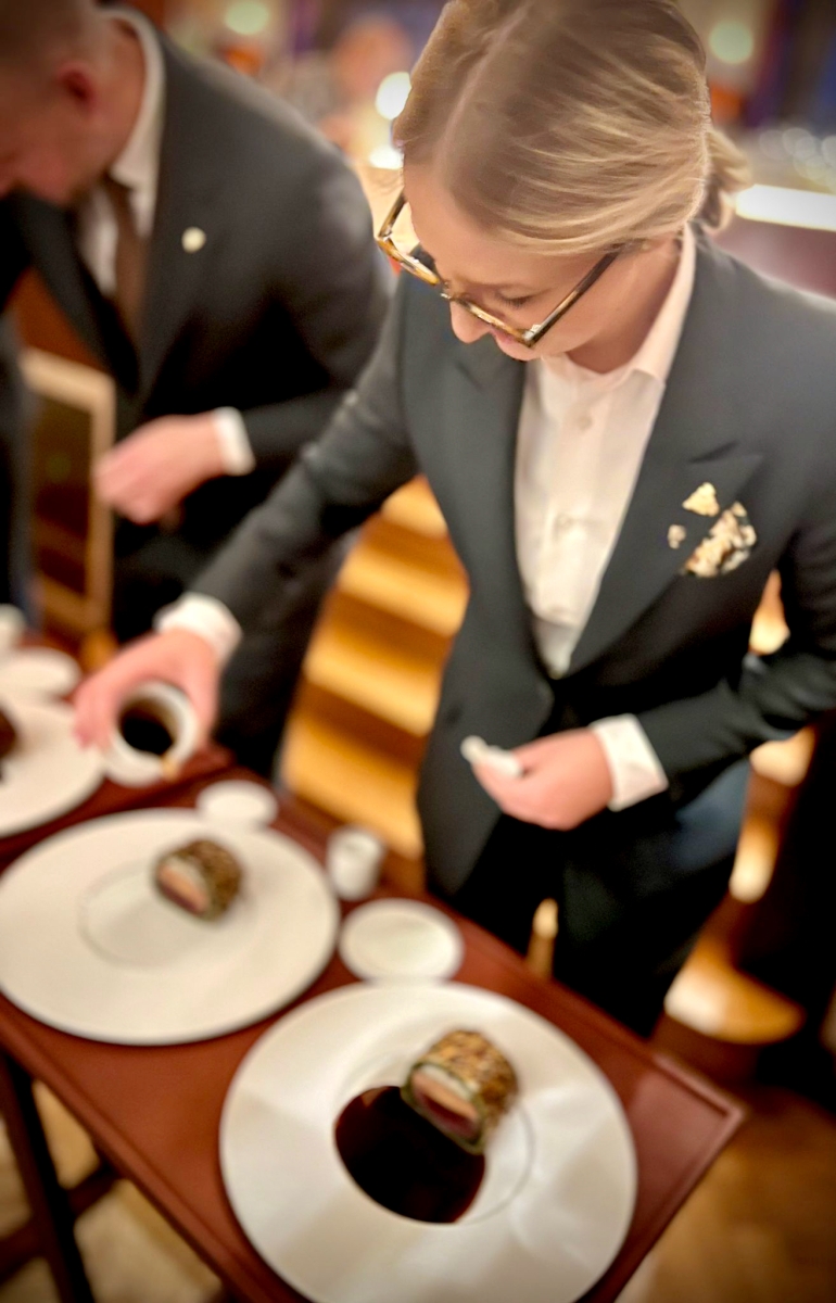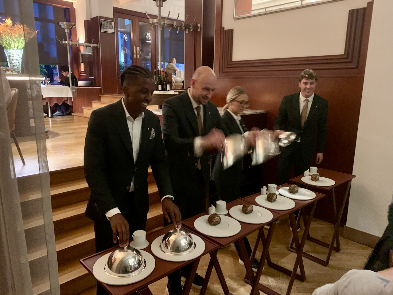 Le service en salle est quelque chose de technique. Il y a des règles à suivre mais, avec de la rigueur et un personnel en nombre suffisant, on peut arriver à un service de qualité. Monsieur Vincent Sibourg, maître d’hôtel, et son équipe vont un cran plus loin.
