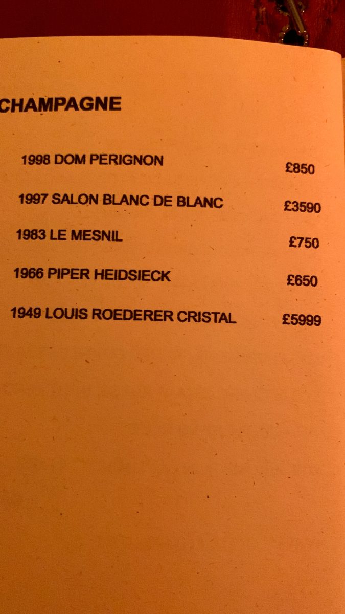 Outre les cocktails, Kwãnt Mayfair propose également quelques bouteilles de vins d’exception, comme ces champagnes :
