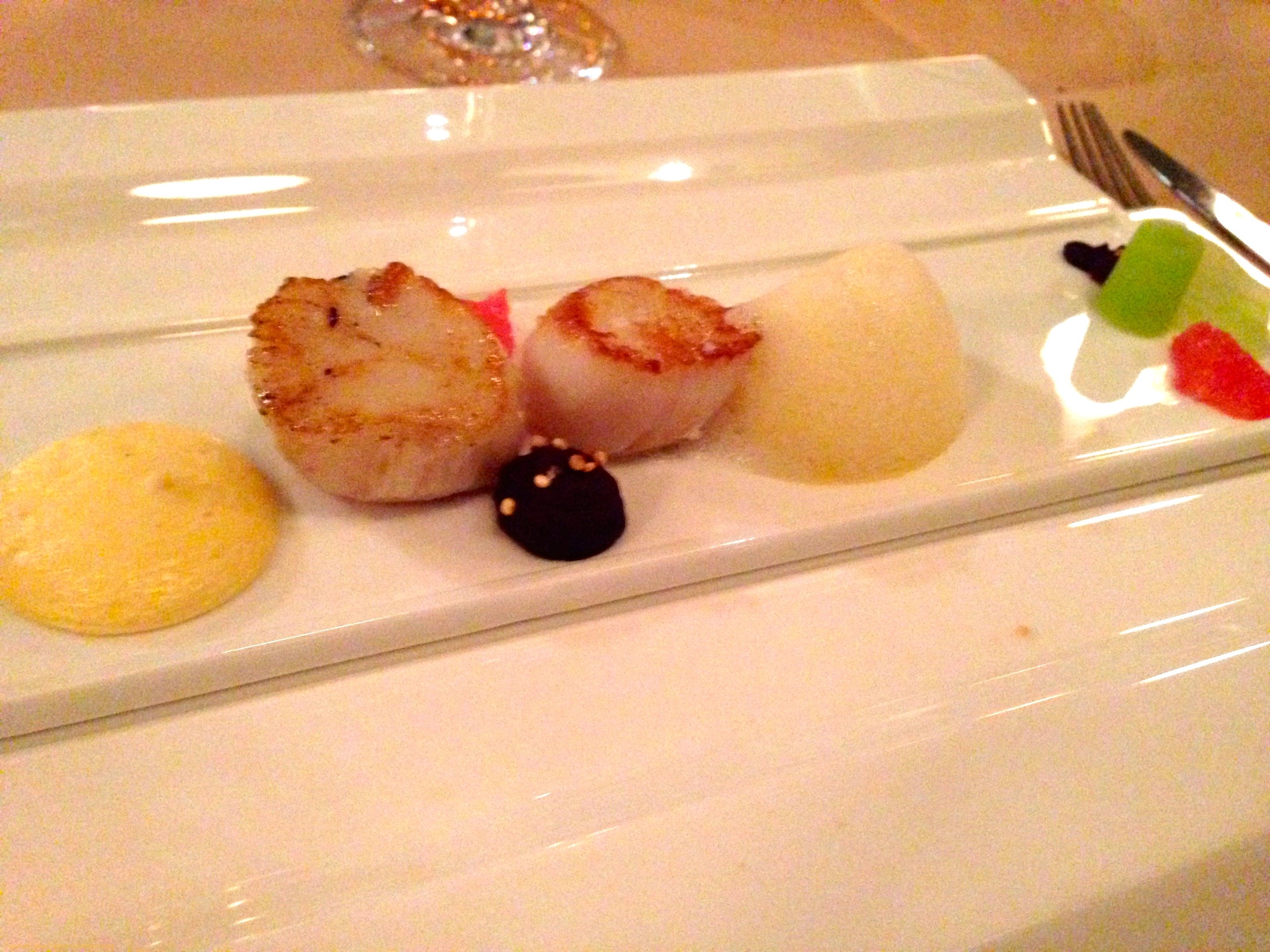 Foie gras poêlé laqué au soja, tartare d'huitres Gillardeau aux agrumes @Restaurant La Ligne Rouge