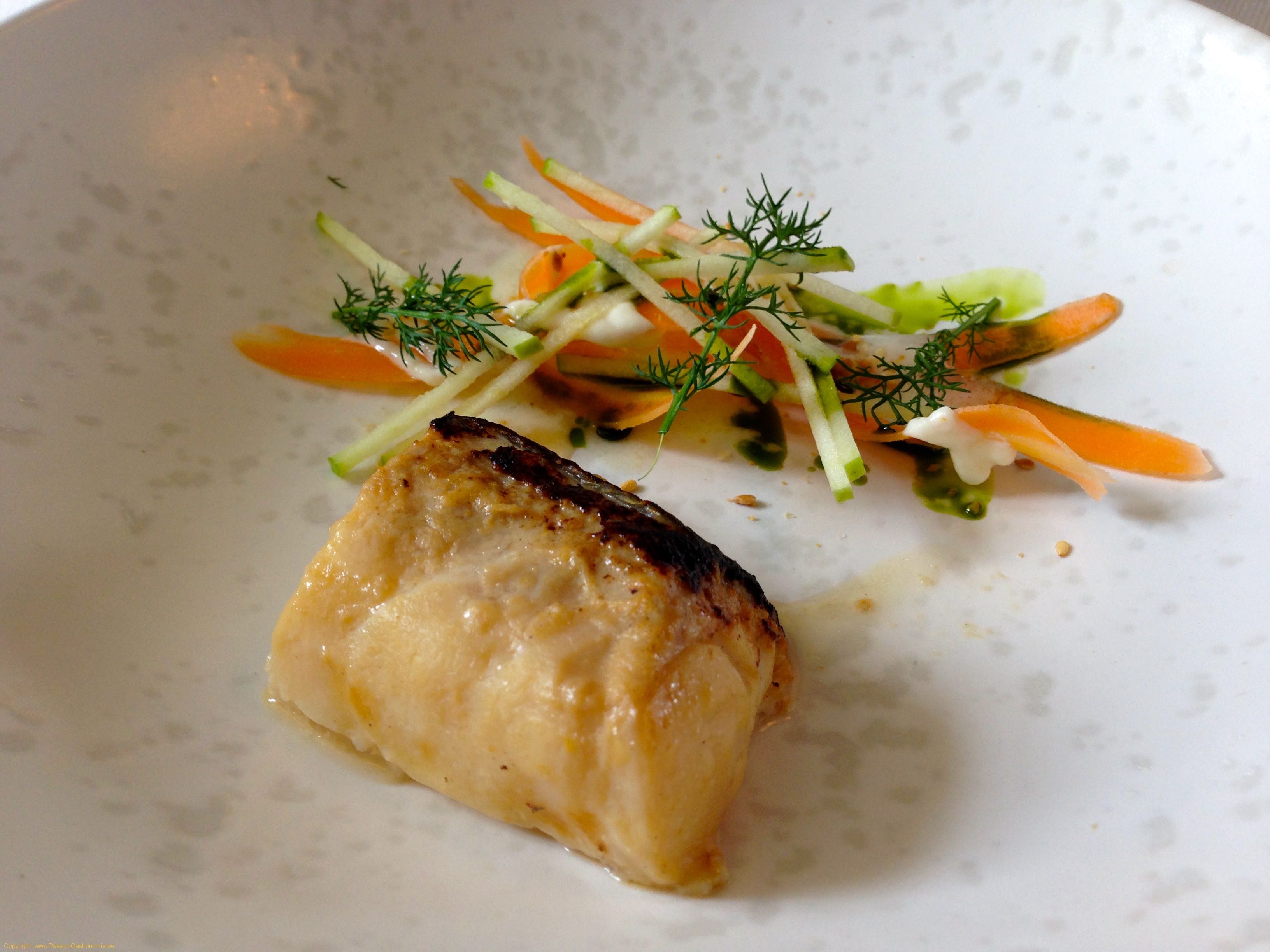 Cabillaud mariné au mirin et miso, pommes et carottes en sauce aigre @L'air du temps