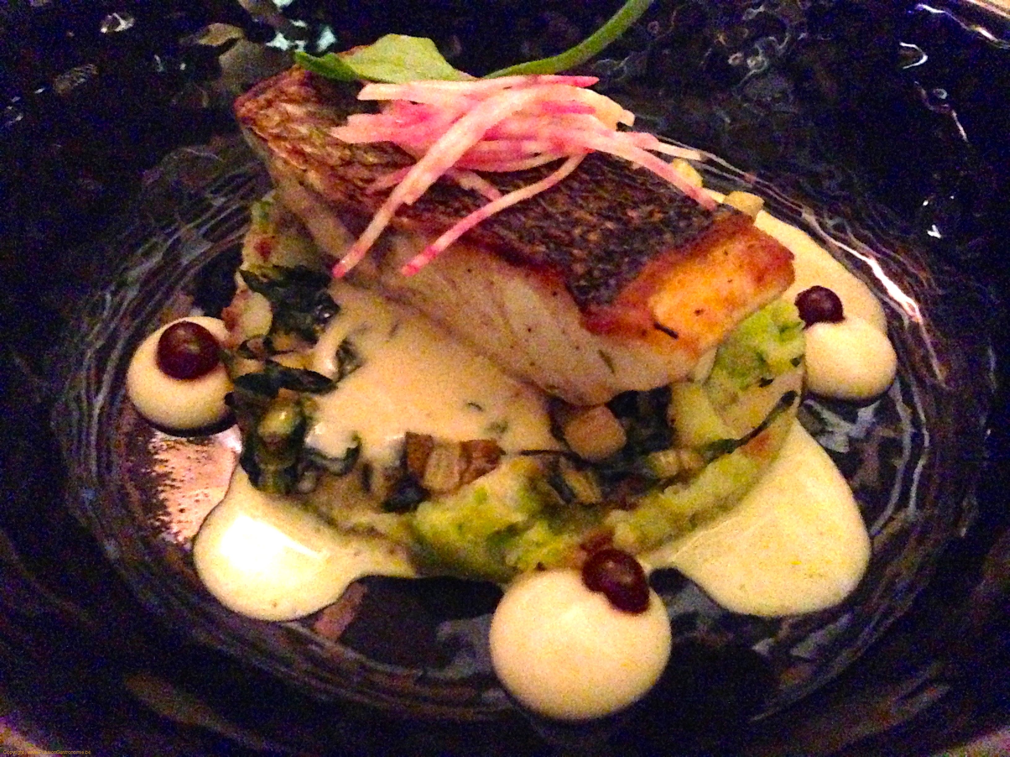 Entrée : Filet de bar de ligne sauvage, salade de pissanlits Italiens, sauce au céleri-rave @L'Original