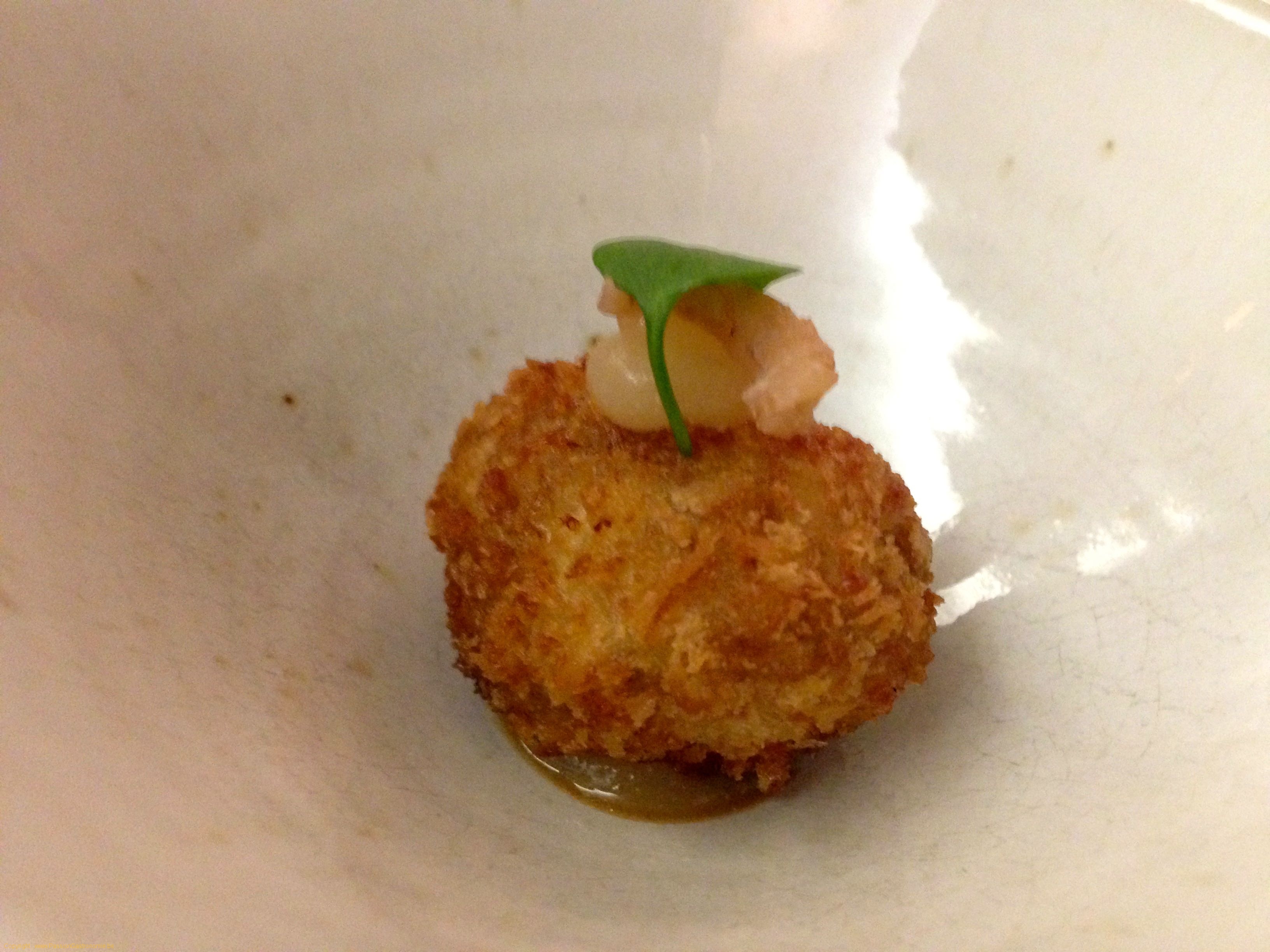 Mise en bouche : Croquette de crevettes grises @Le Coq aux Champs