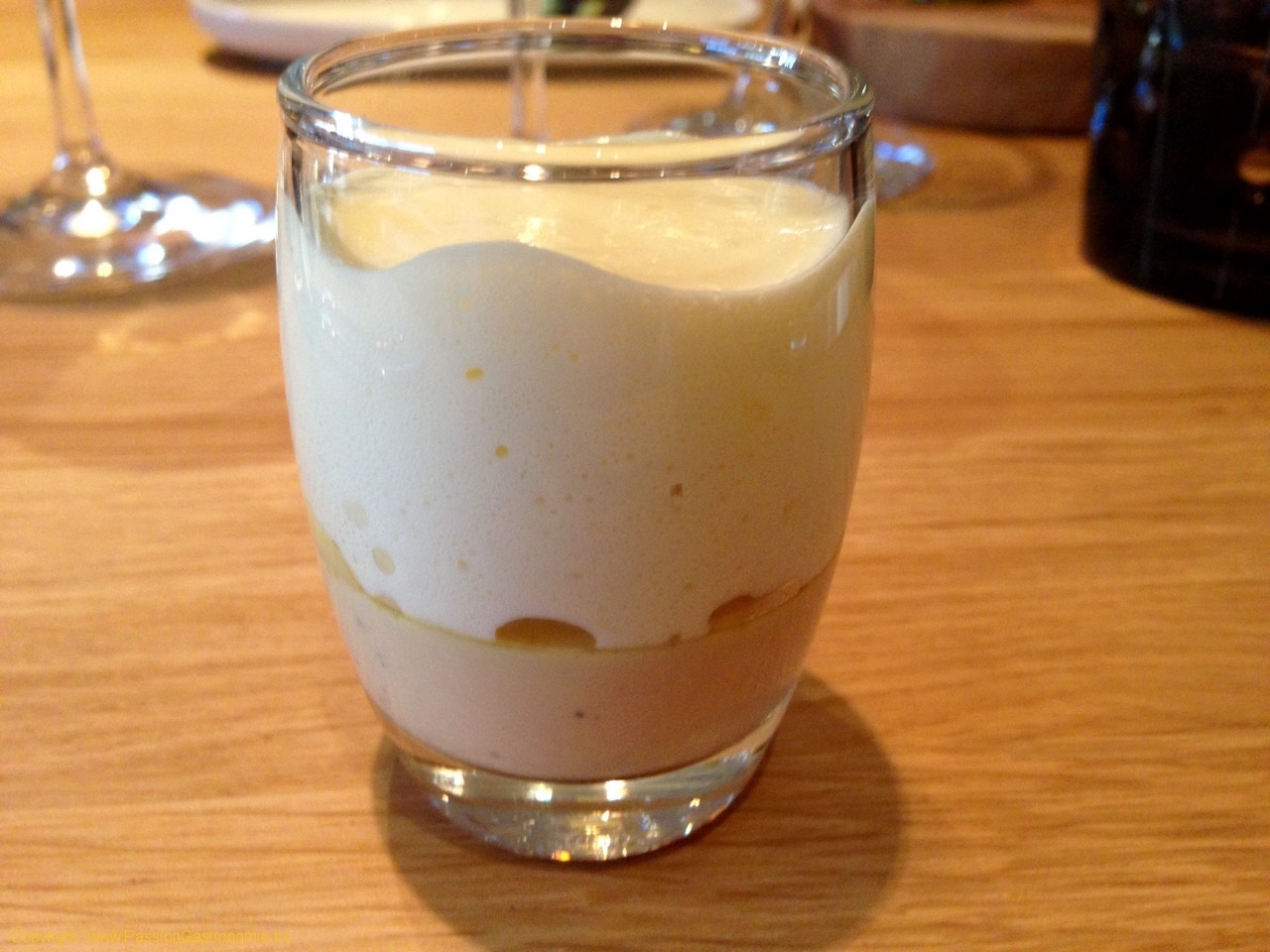 Mise en bouche : Mousse de foie gras, réduction de porto et balsamique, espuma de parmesan @Alain Bianchin