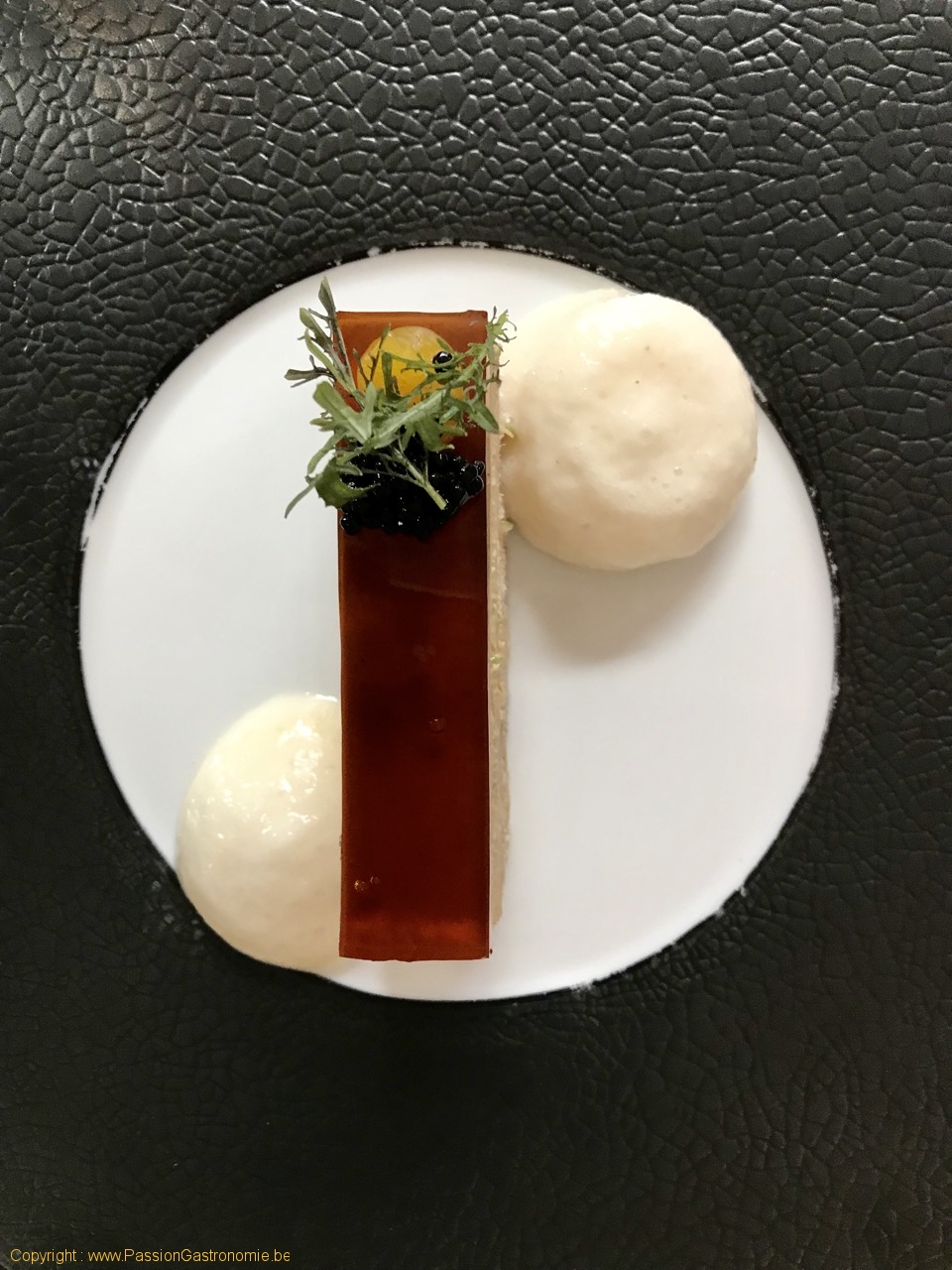 La terrine de foie gras de canard belge et anguille fumée, chou rave @Restaurant Anarchy
